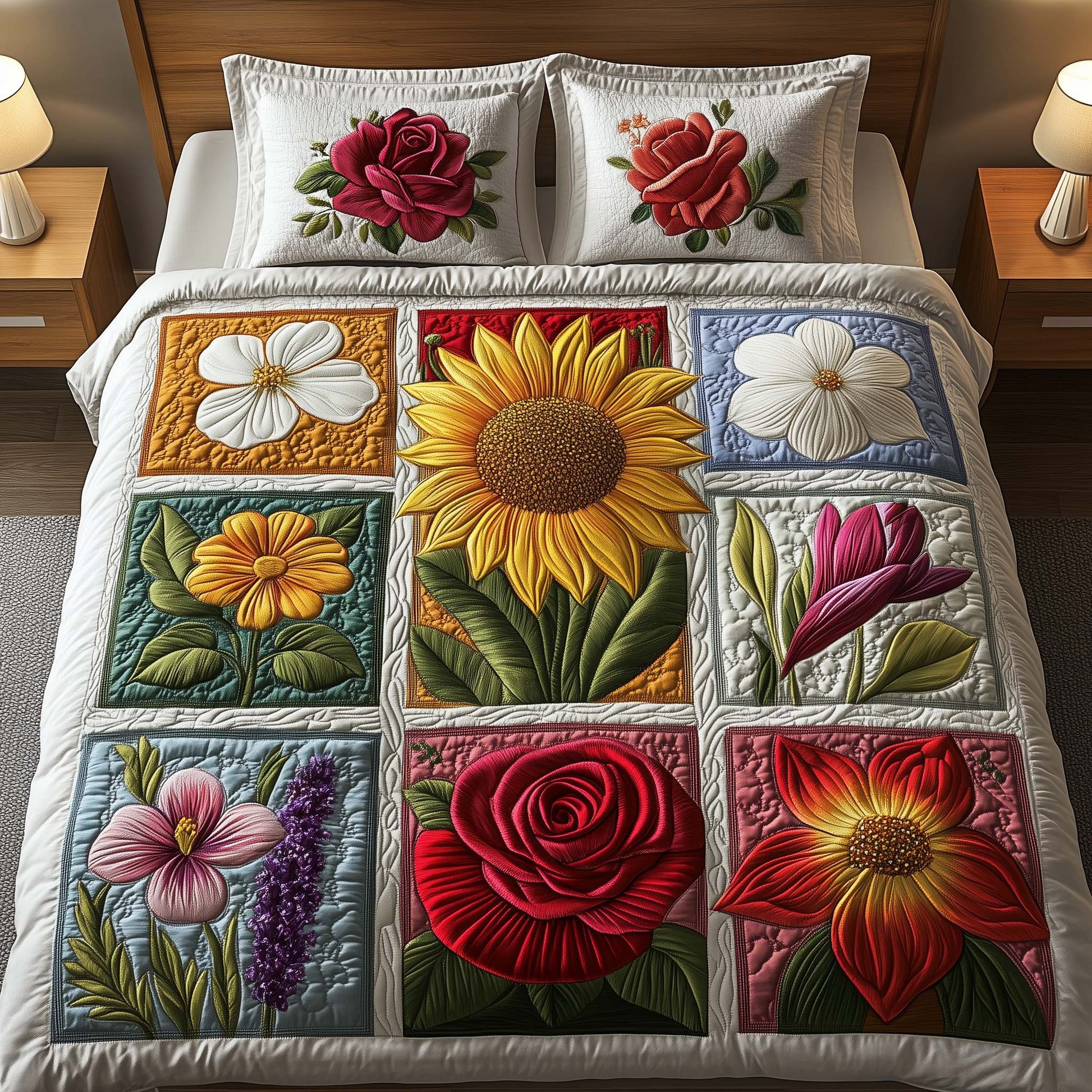 This quilted bedding set is amazing. The fabric is high-quality, and the design is stunning.