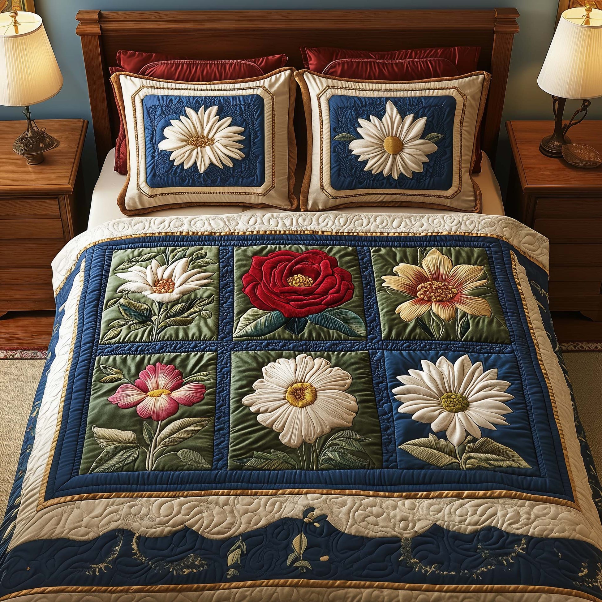 This quilted bedding set is amazing. The fabric is high-quality, and the design is stunning.