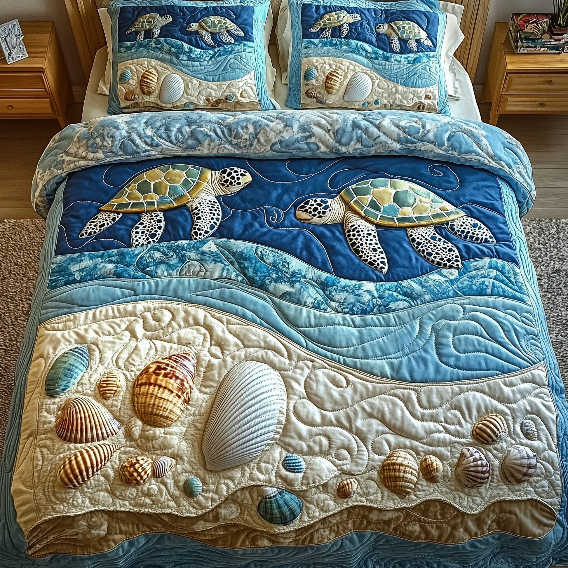 This quilted bedding set is amazing. The fabric is high-quality, and the design is stunning.