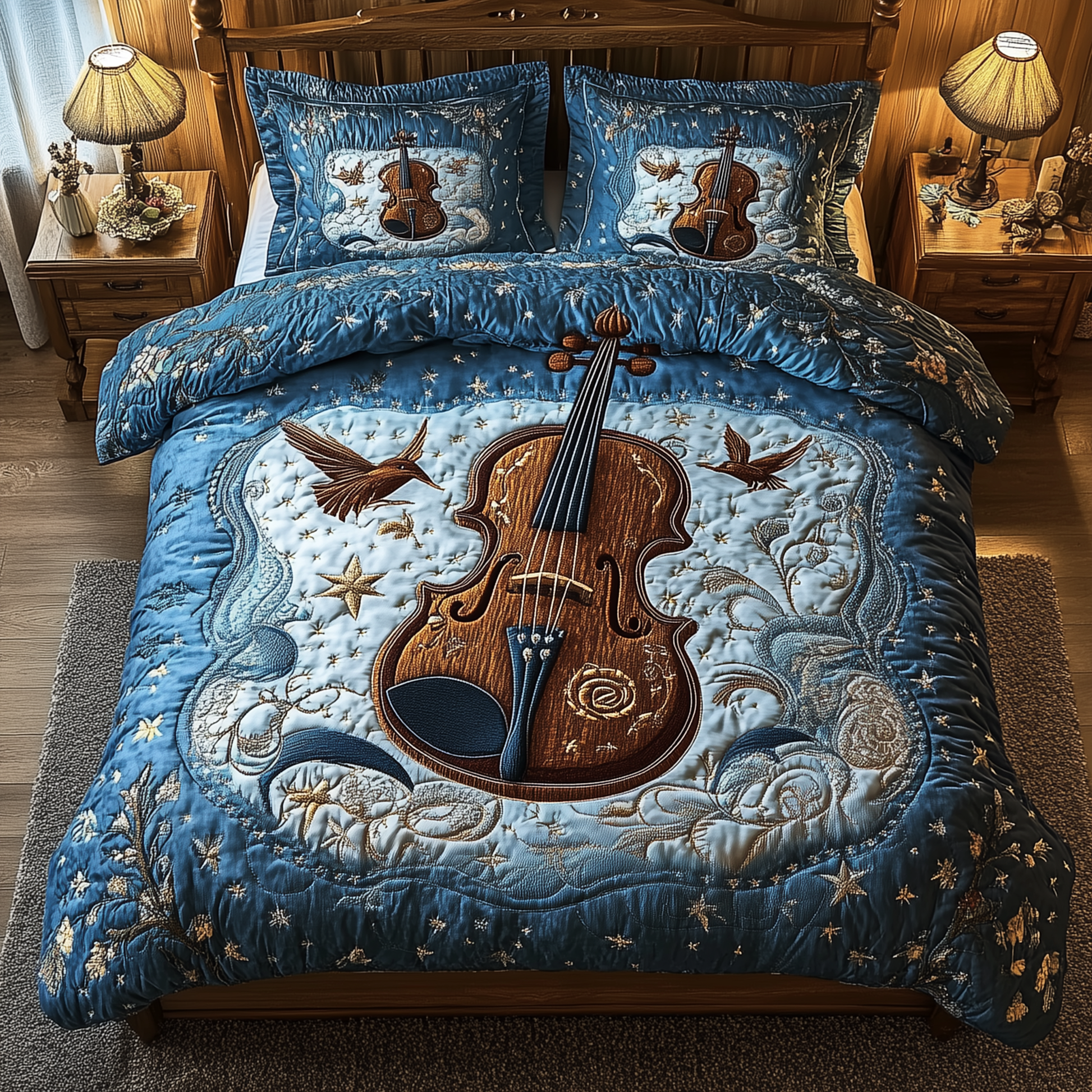 Blue Melodies 3-Piece Quilted Bedding Set GFTOTL1463