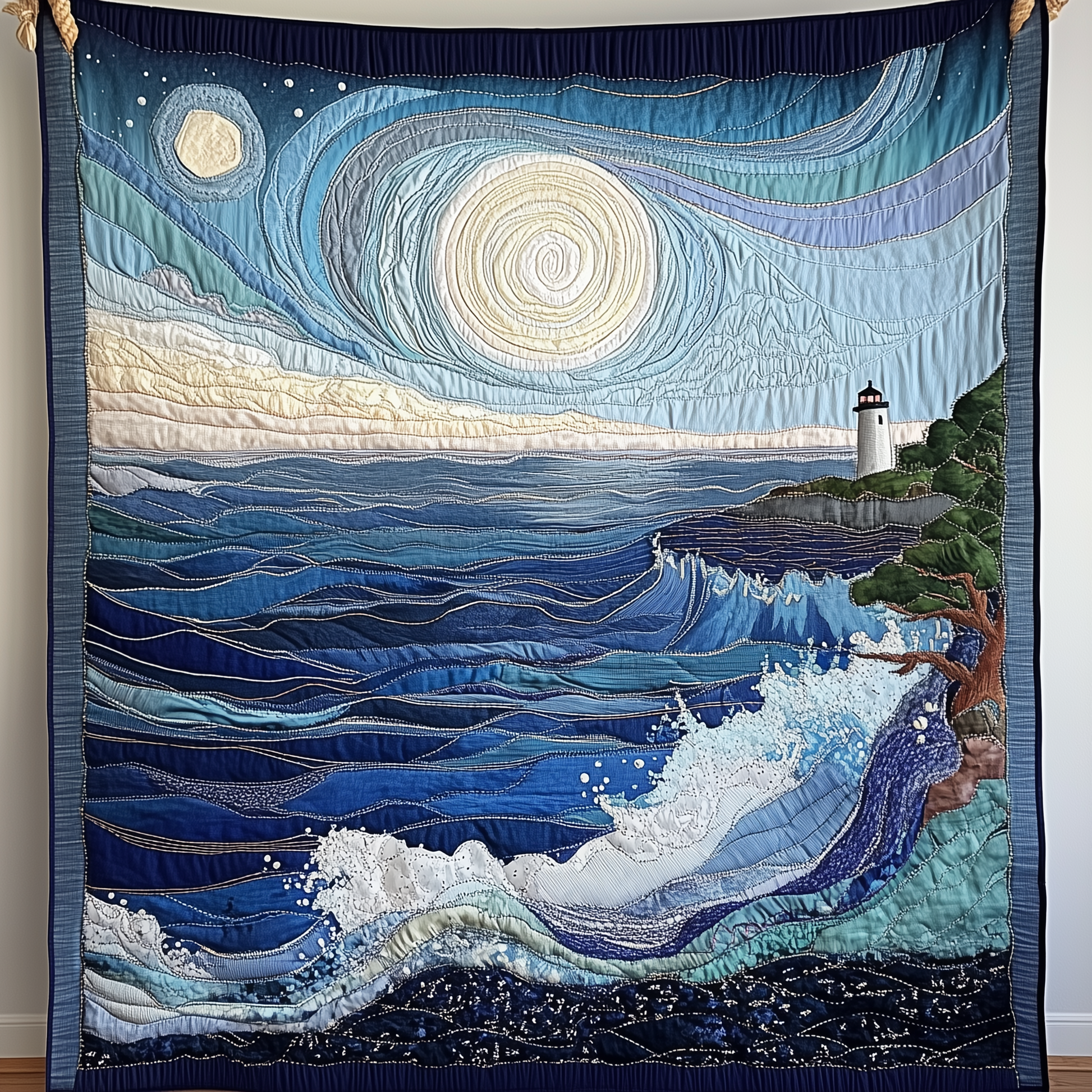 Blue Sea In Moonlight Quilted Blanket GFTONL1810