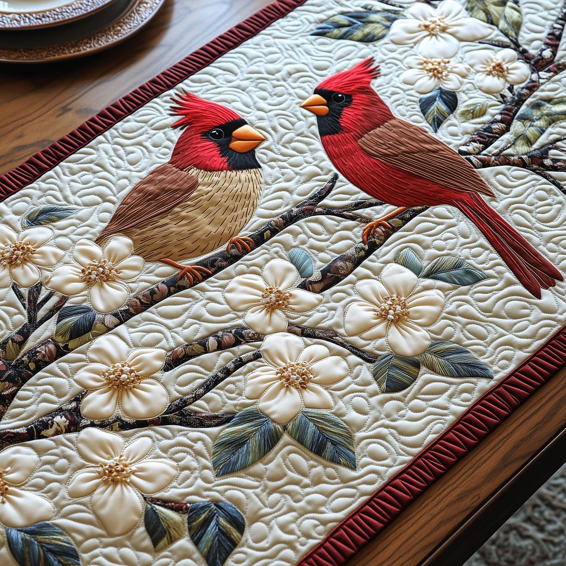 Cardinals in Bloom Quilted Table Runner GFTOHD6667