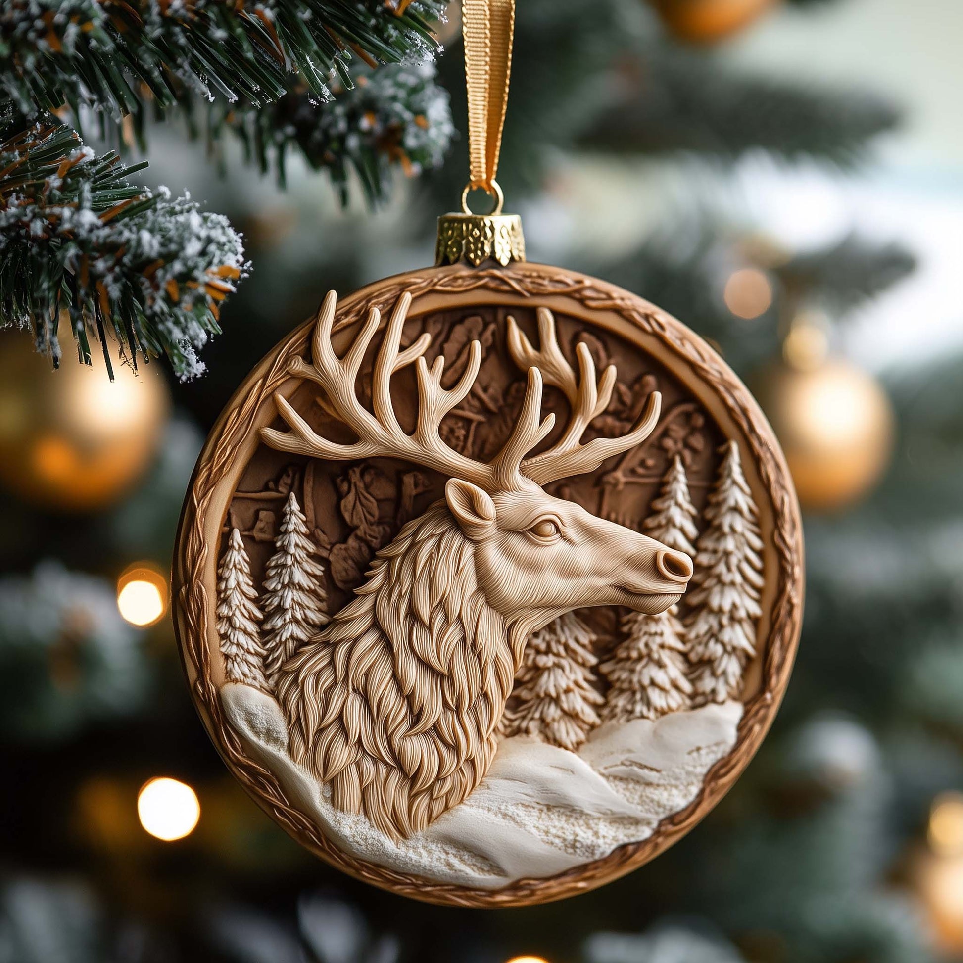 Carved Elk Christmas Mica Ornament GFSPQM09