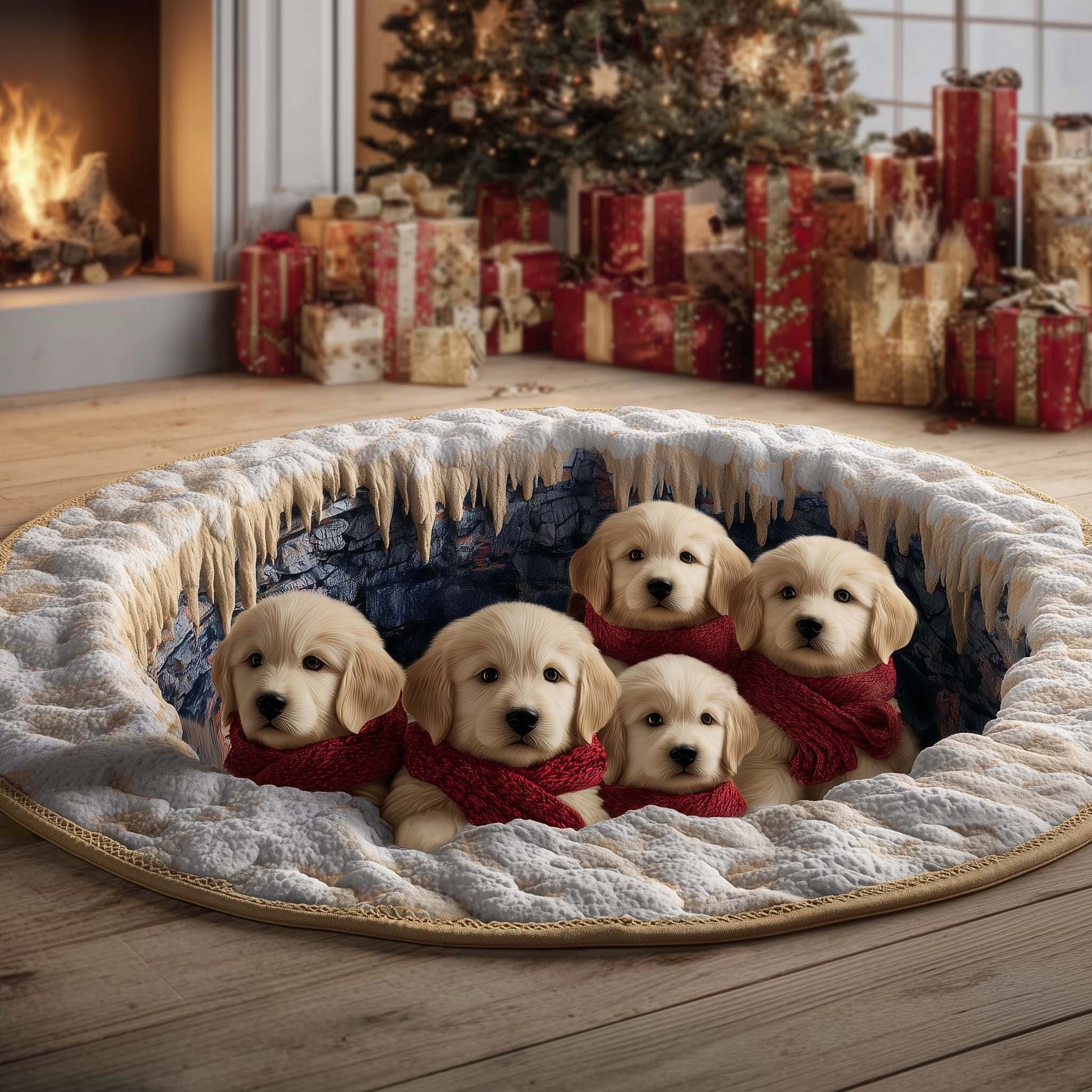 Christmas Golden Crew Quilted Round Mat GFTOHD12123