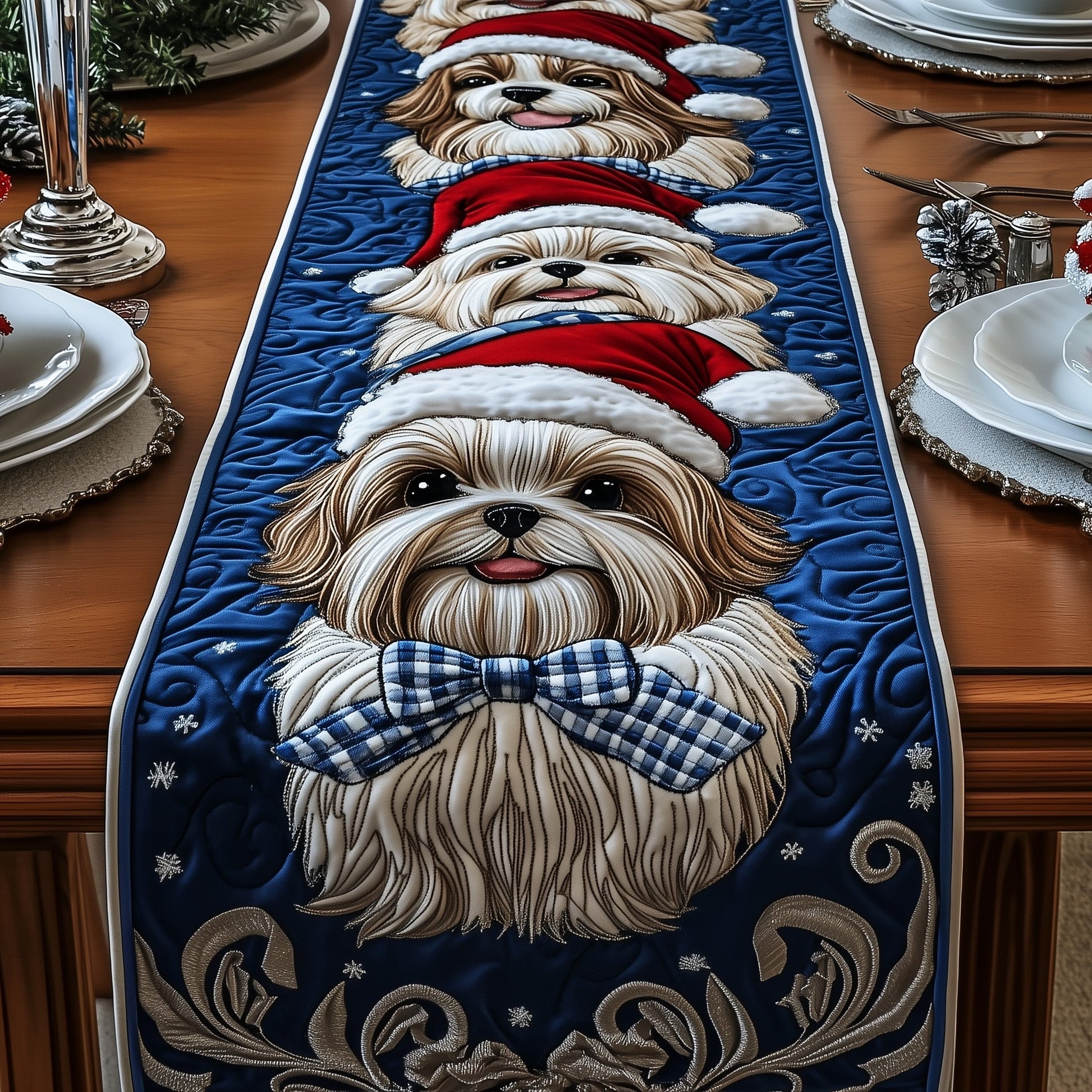 Christmas Shih Tzu Quilted Table Runner GFTOYC713