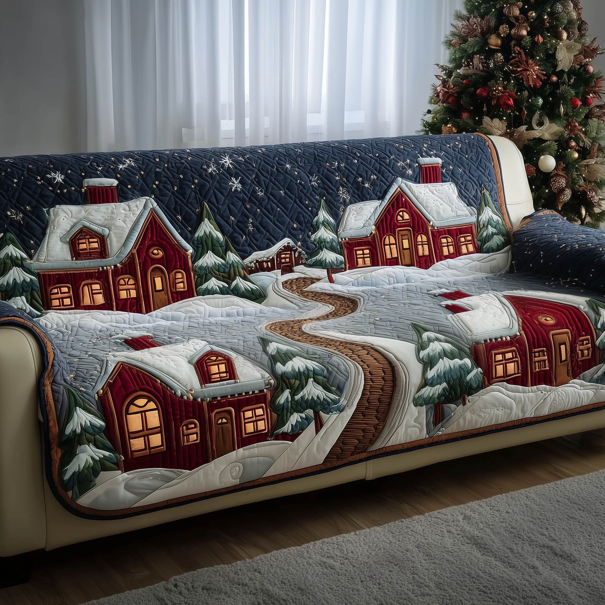 Christmas Village Quilted Sofa Cover GFTONT4826