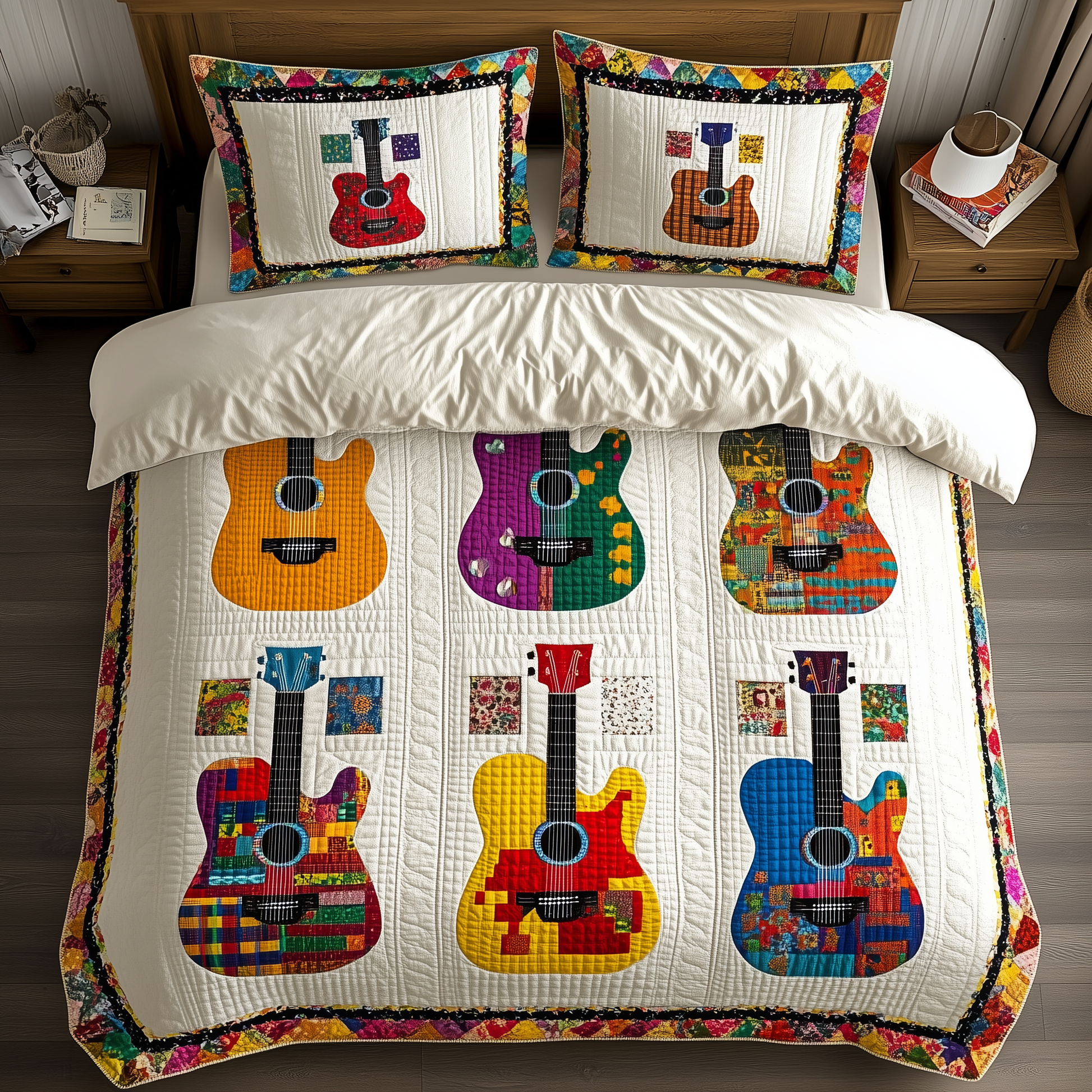 Colorful Guitars 3-Piece Quilted Bedding Set GFTONL758