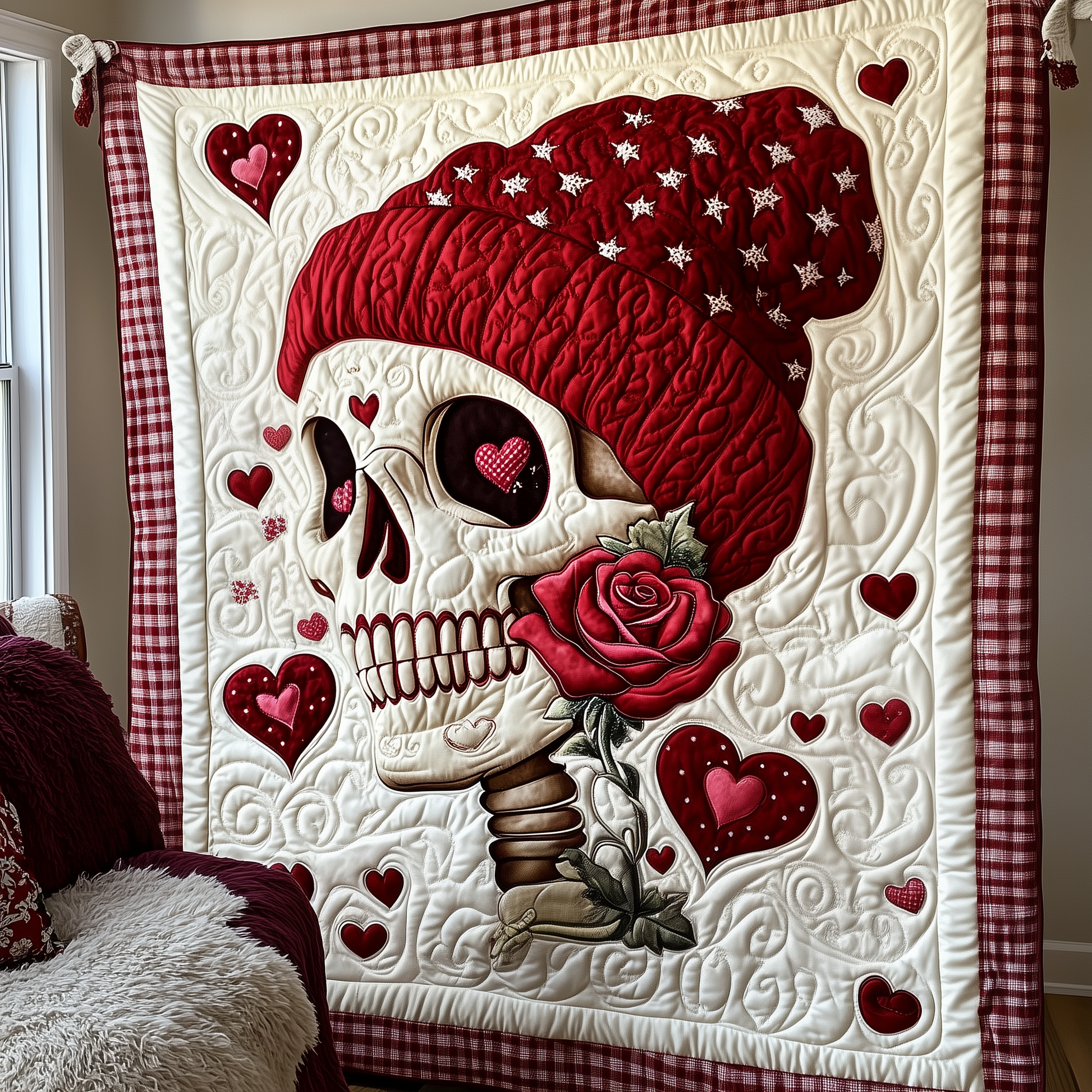 Crimson Valentine Skull Quilted Blanket GFTOTP1835