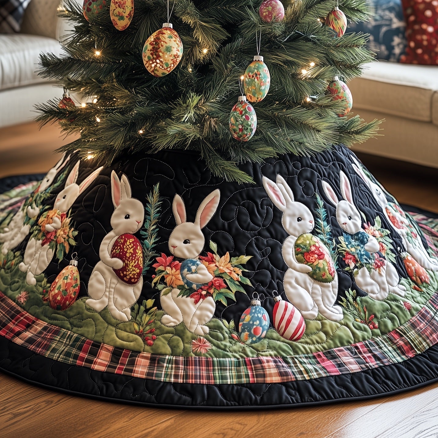 Whether you're decorating for the holidays or simply adding charm to your home, this quilted tree skirt is the perfect finishing touch. Its classic design and durable construction make it a must-have for your tree, offering both style and functionality.