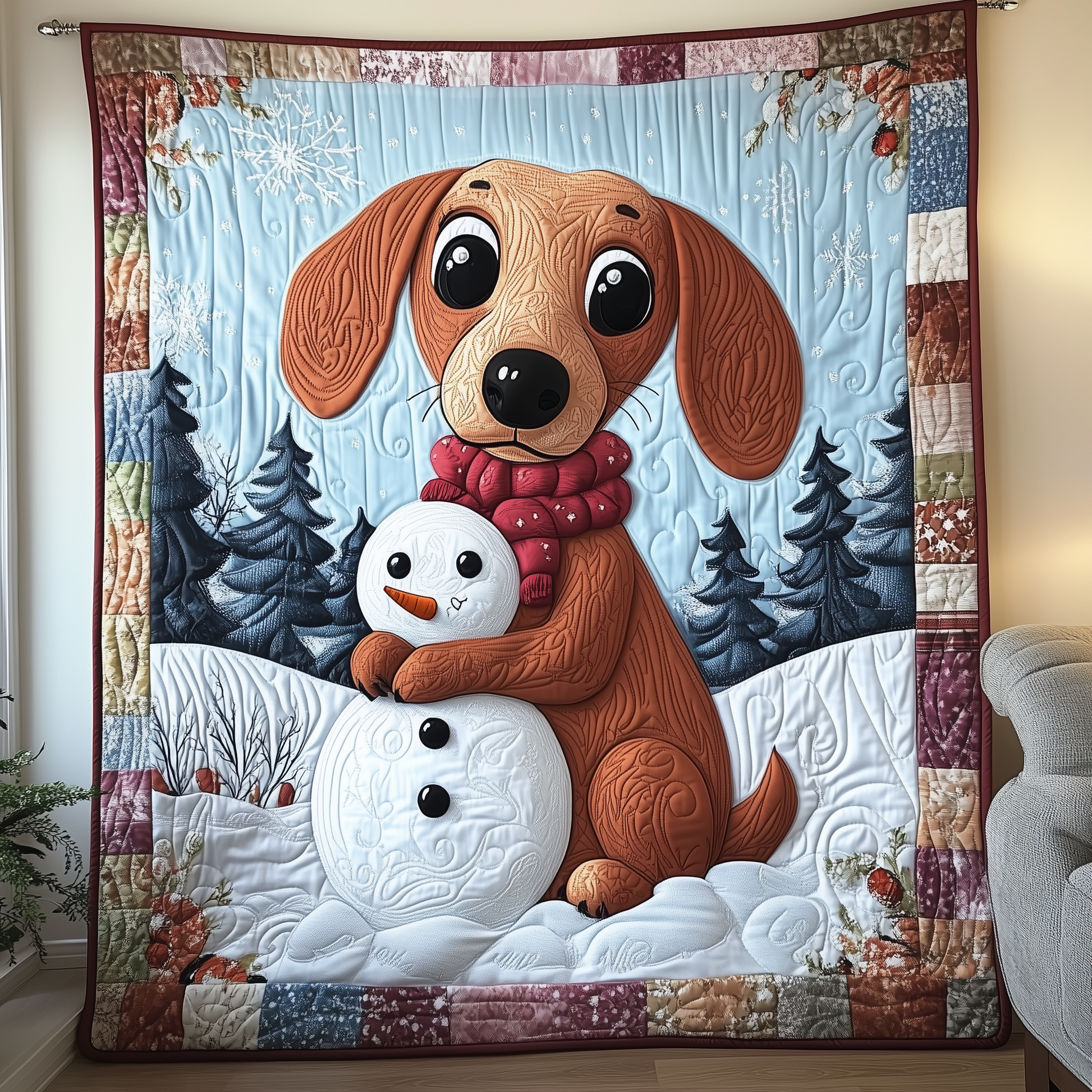 Dachshund in Snowy Night Quilted Blanket GFTOTL1602