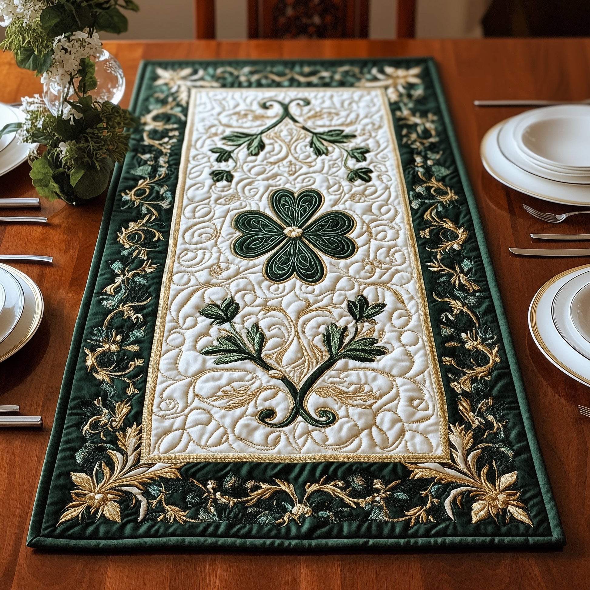 Elegance Irish Shamrock Quilted Table Runner GFTOHD3252