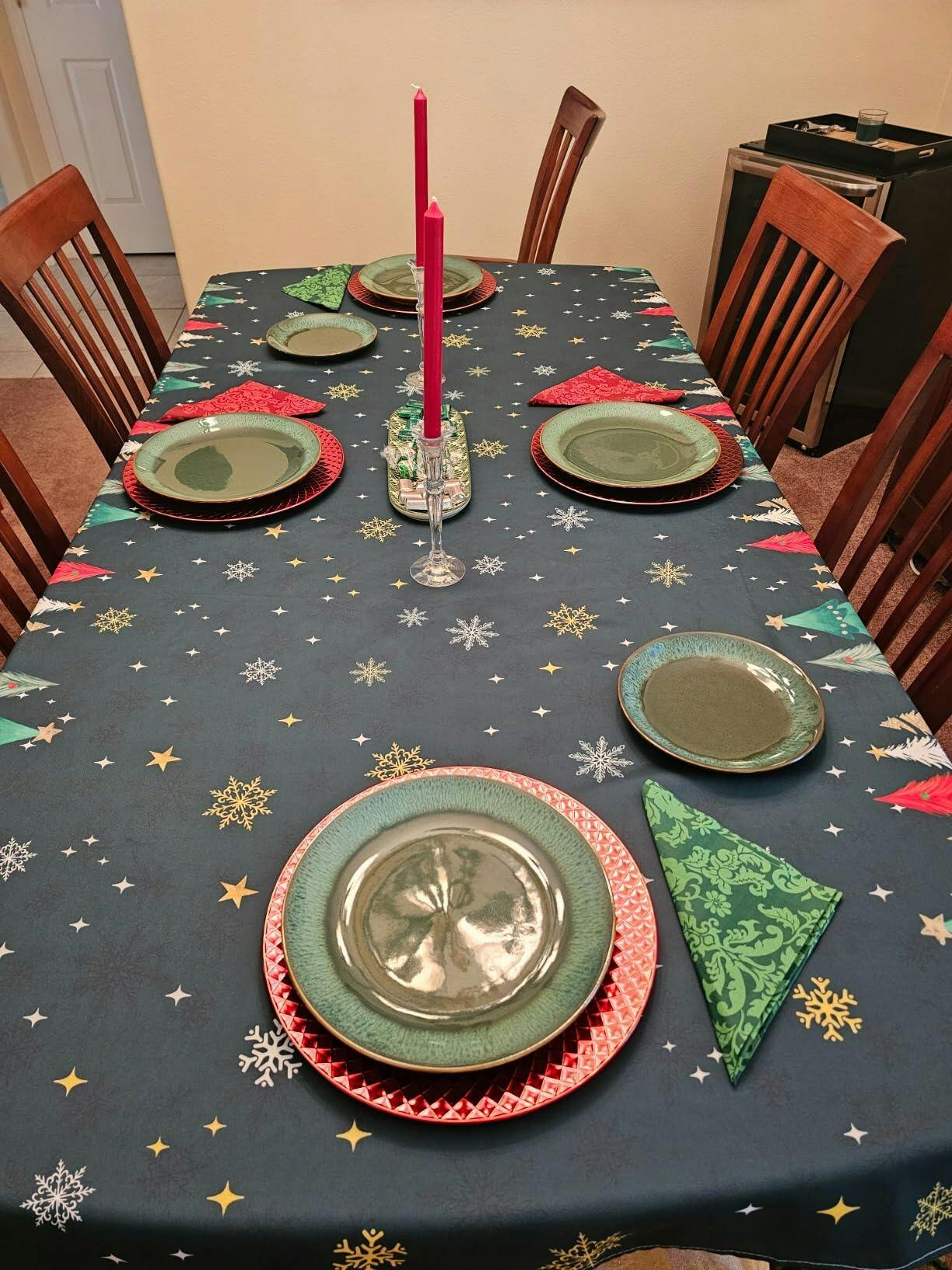 This tablecloth completely transformed my dining area. The color is rich and classy!