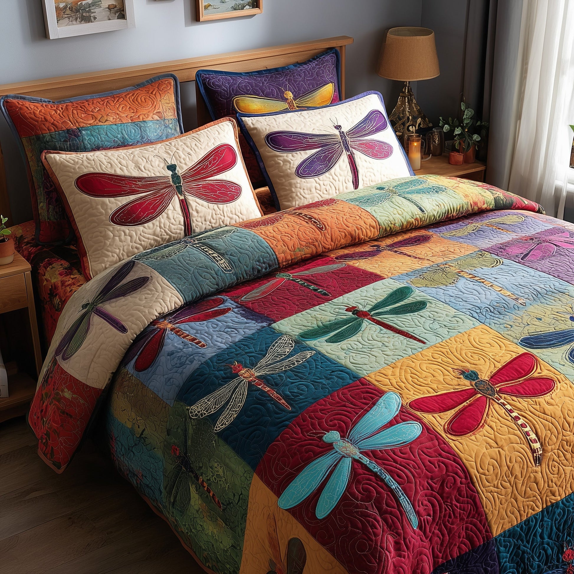 Enchanted Dragonfly 3-Piece Quilted Bedding Set GFTOTP9120