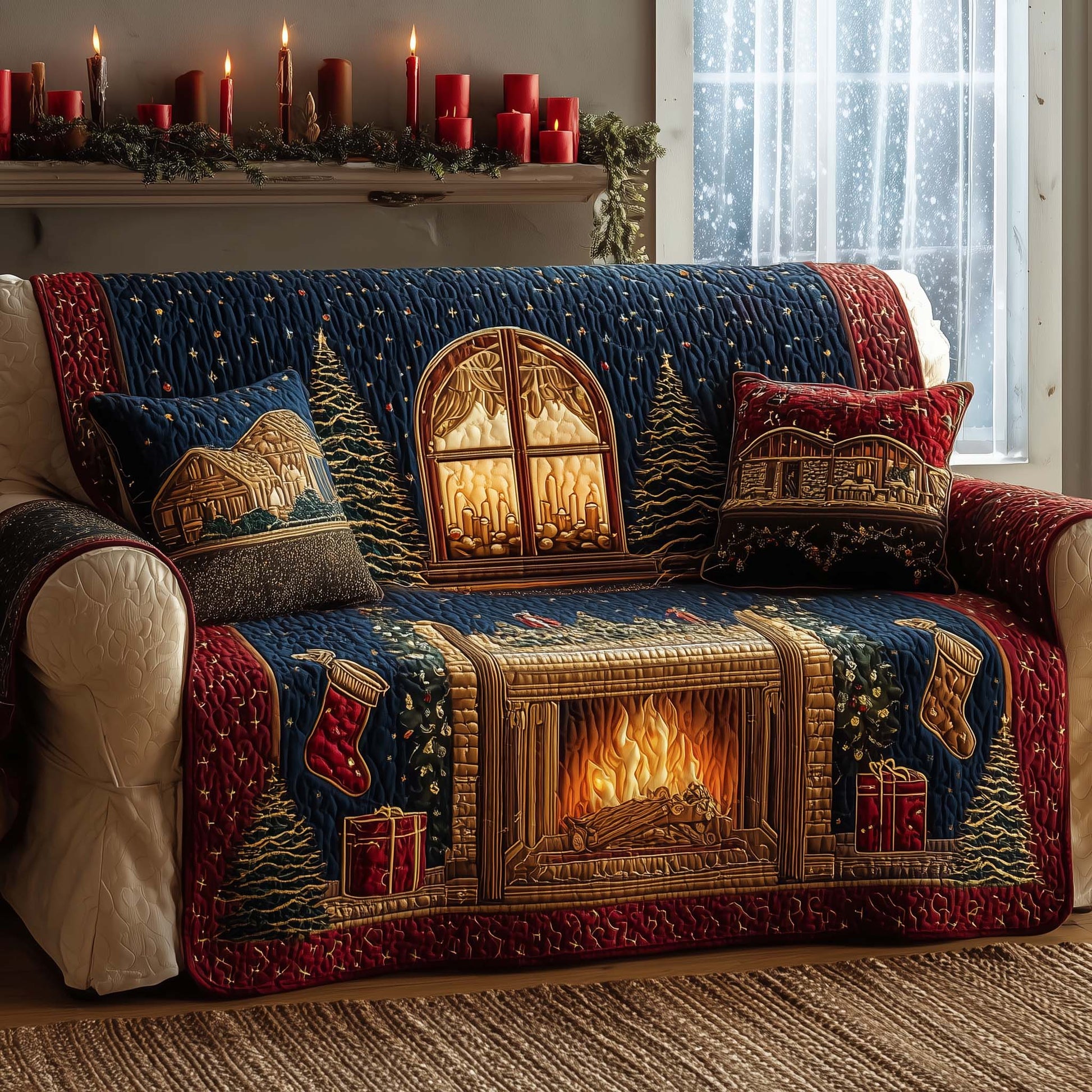 Festive Fireplace Quilted Sofa Cover GFTOYC2004