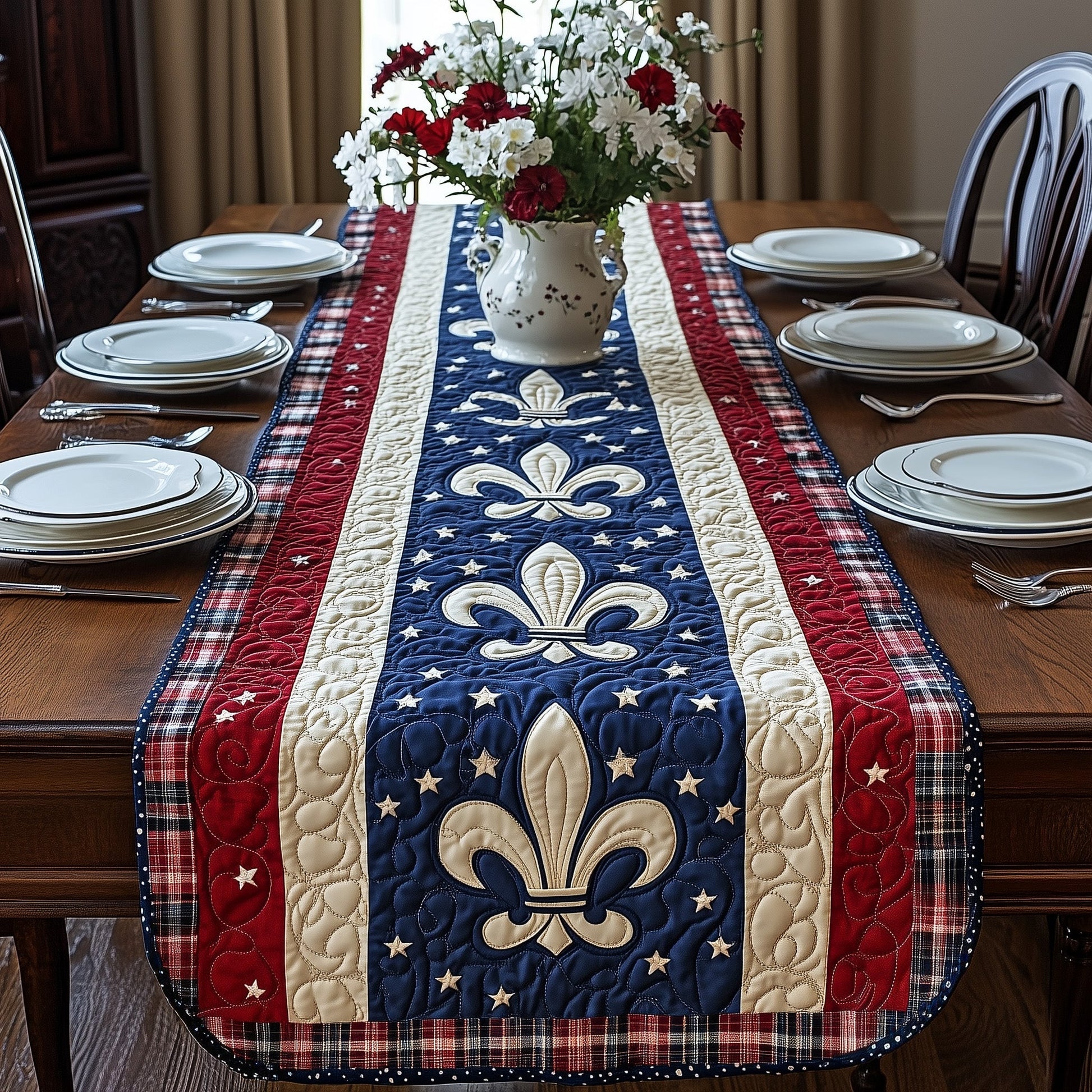 Festive Fleur de lis Quilted Table Runner GFTOHD3661