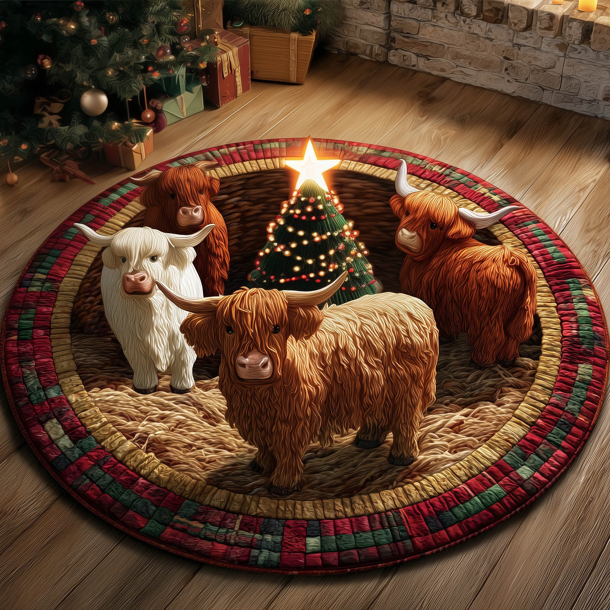 Festive Highland Cow Quilted Round Mat GFTONT5136