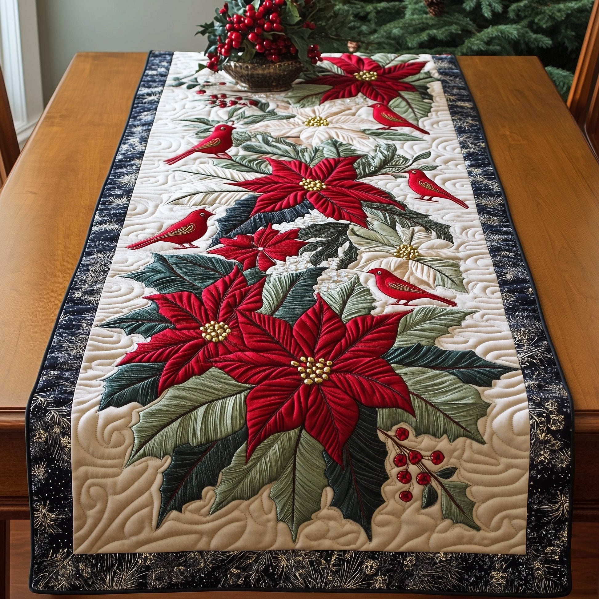 Festive Poinsettia Quilted Table Runner GFTONT3918