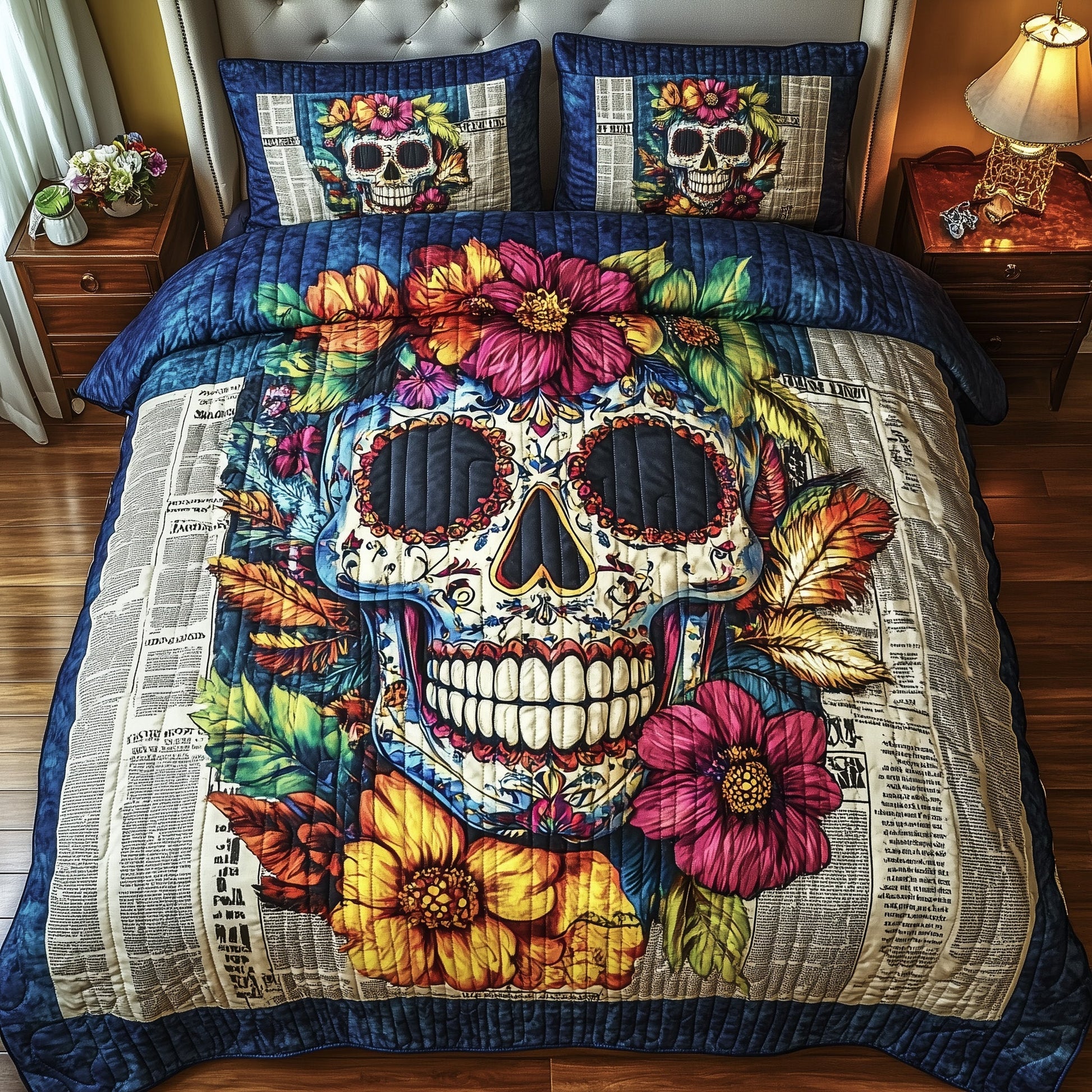 Floral Skull 3-Piece Quilted Bedding Set GFTOTP7549