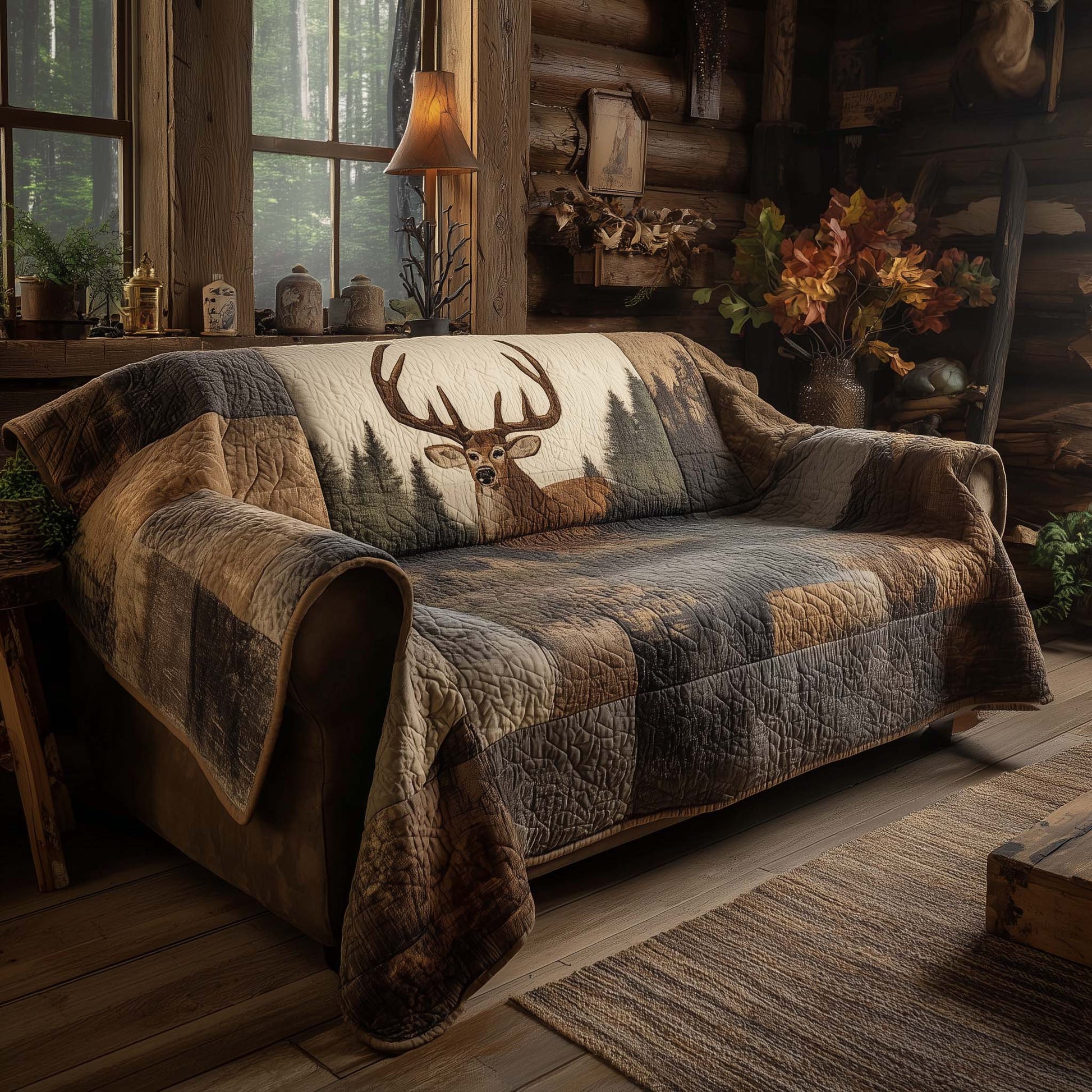 Forest Deer Quilted Sofa Cover GFTOHD11708