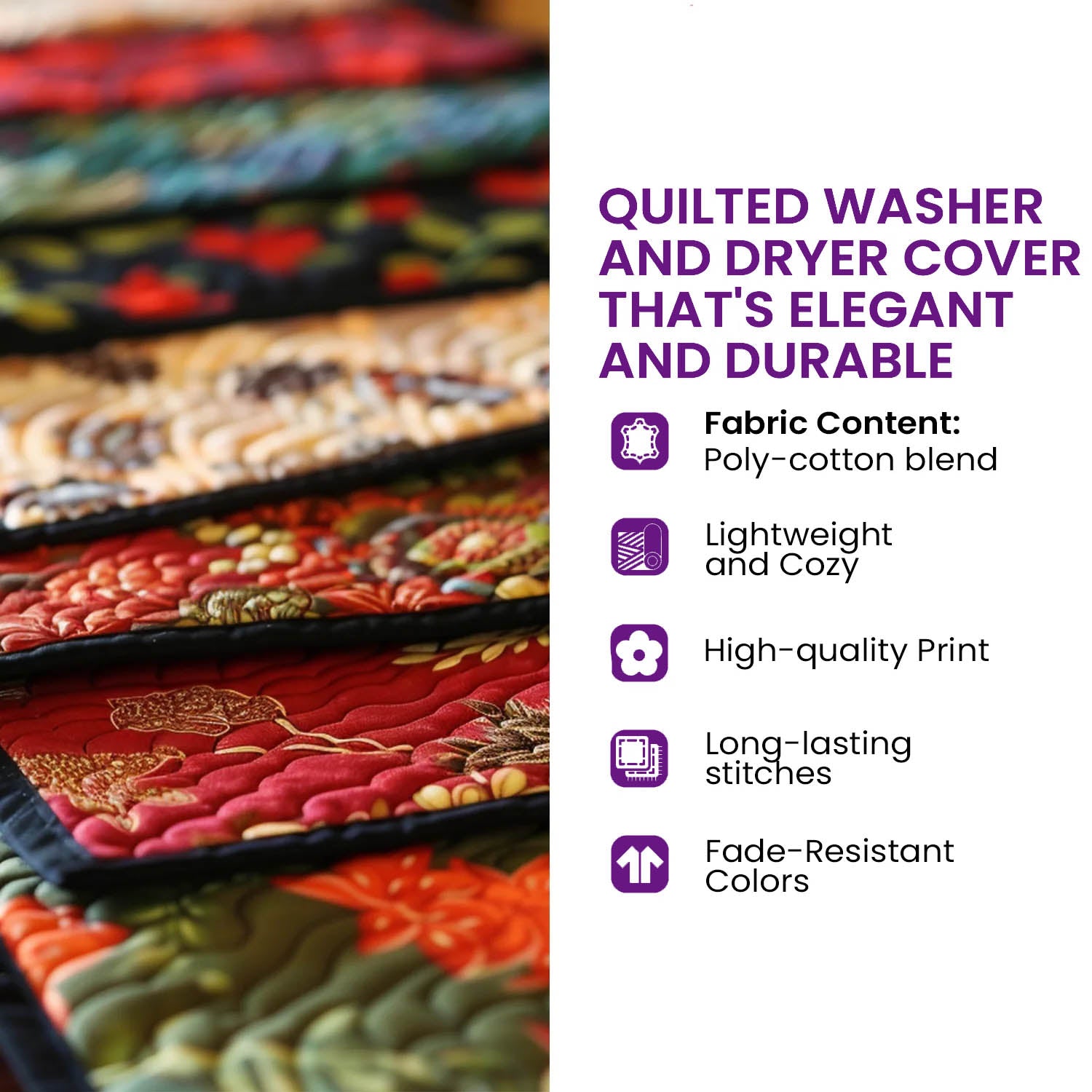 - Quality Material: Our covers are crafted from a premium Jetiy cotton-poly blend, combining the softness and breathability of cotton with the durability and easy care of polyester. The quilted texture adds a cozy look and provides extra protection for your washer, dryer, and other household machines, adding both charm and practicality to your space.