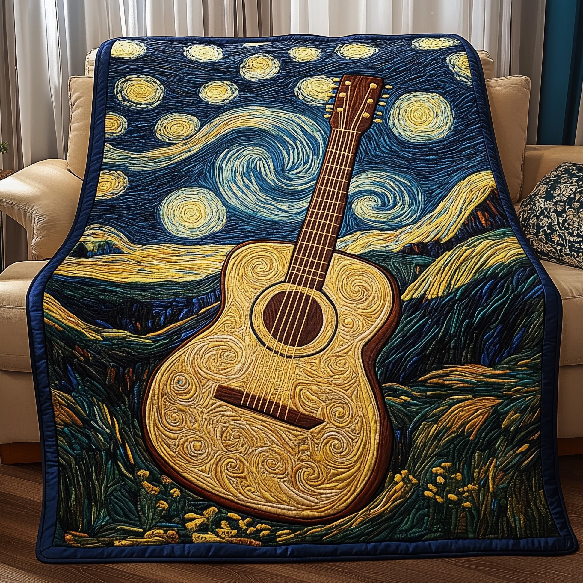 Guitar Starry Night Quilted Blanket GFTOHL10