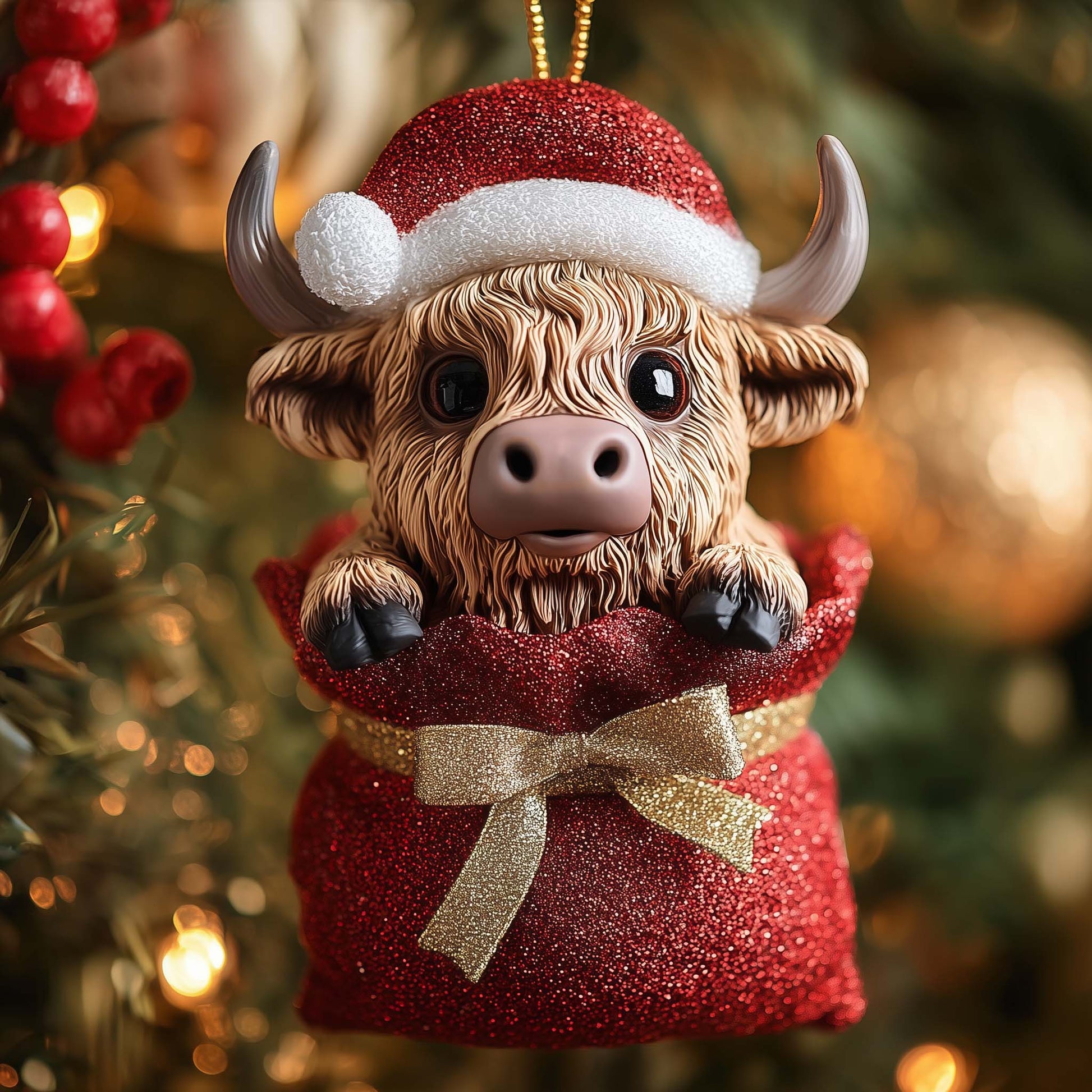 Holiday Highland Cow Christmas Mica Ornament GFTONL7209
