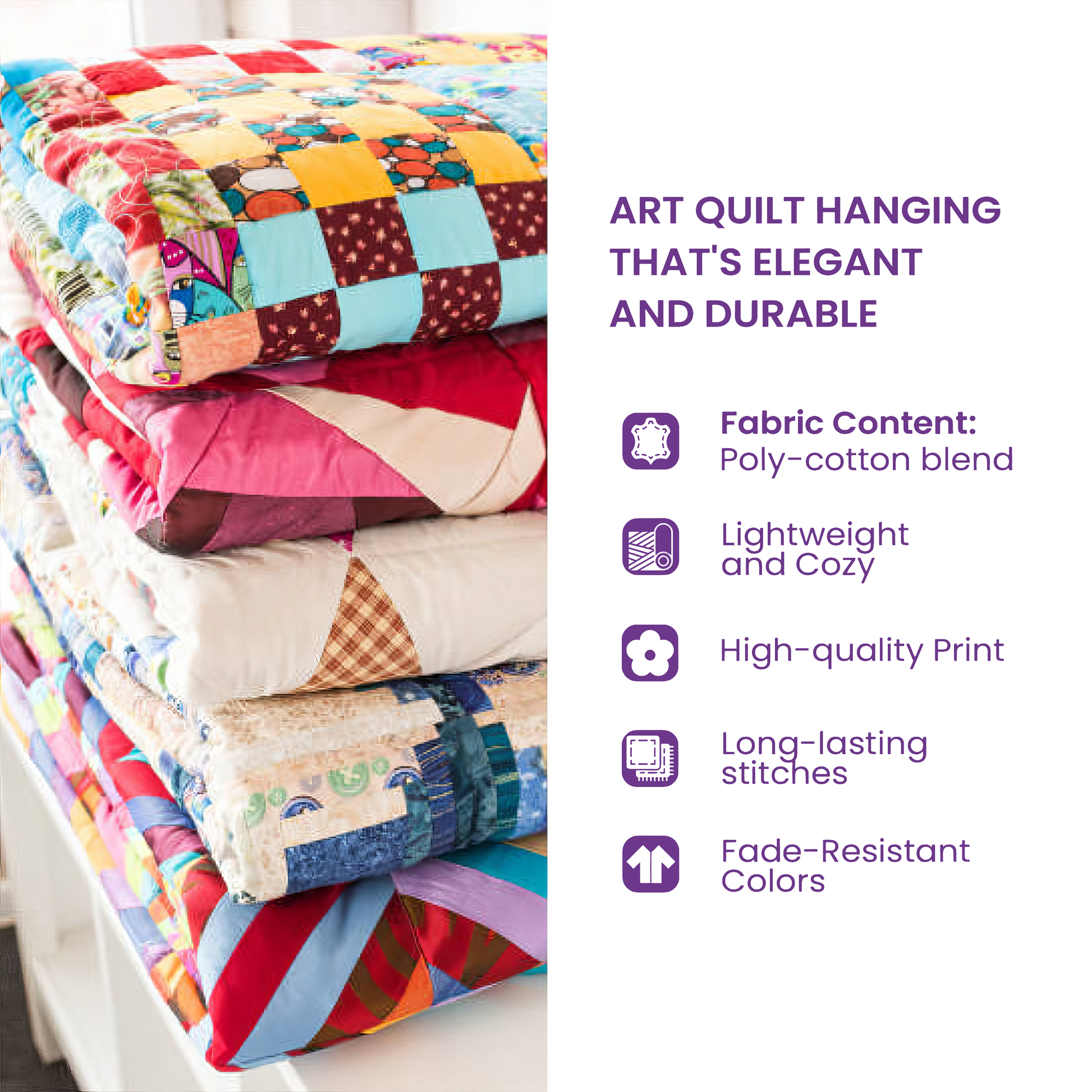 Transform your walls into a canvas of comfort and creativity with our art quilt hanging - where warmth meets artistry. This exquisite piece doesn’t just decorate your home; it tells a story, adding a unique touch of charm and character to any room. Whether you're seeking to infuse your space with personal flair or looking for an unforgettable gift, our art quilt hanging is a masterpiece perfect for every occasion, from weddings to housewarmings and beyond!