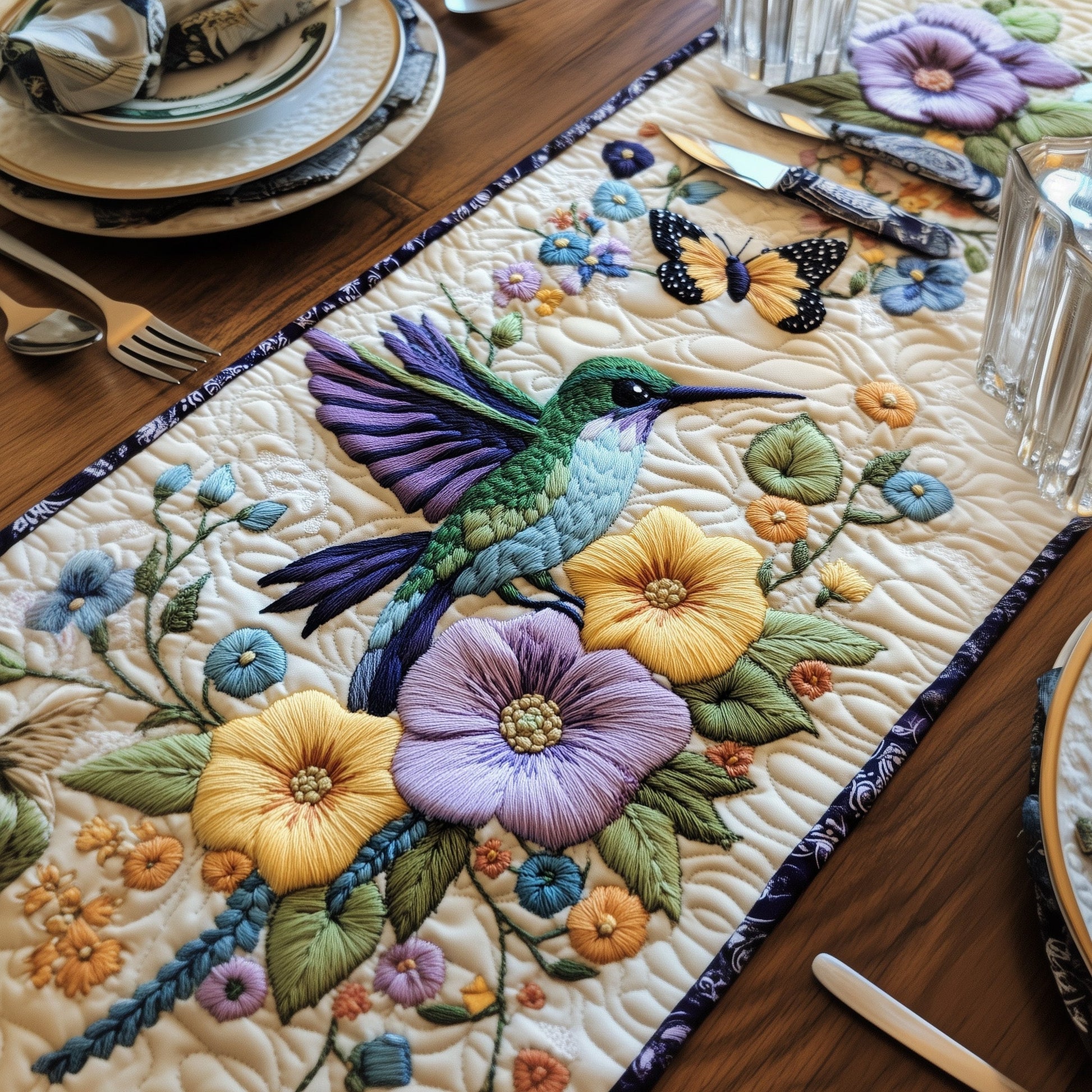 Hummingbird Bloom Garden Quilted Table Runner GFTOHD6551