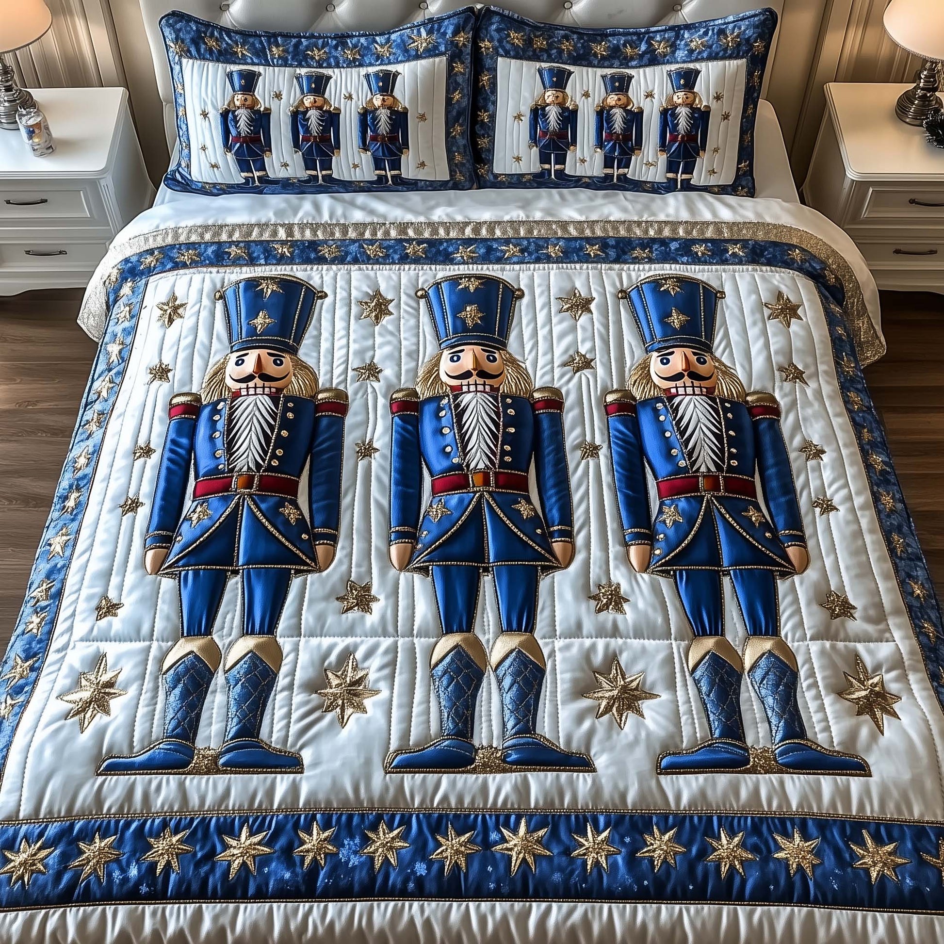 This quilted bedding set is amazing. The fabric is high-quality, and the design is stunning.