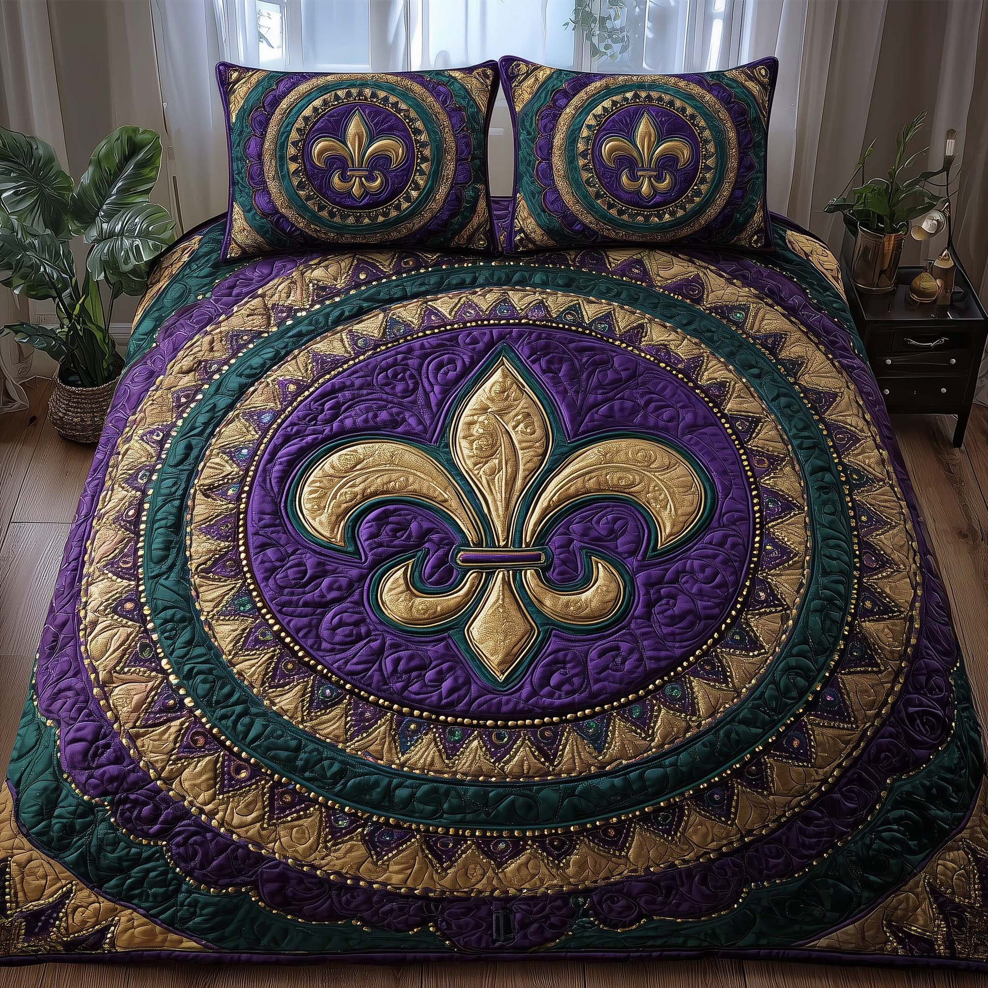 Mardi Gras Fleur 3-Piece Quilted Bedding Set GFTOQA1343