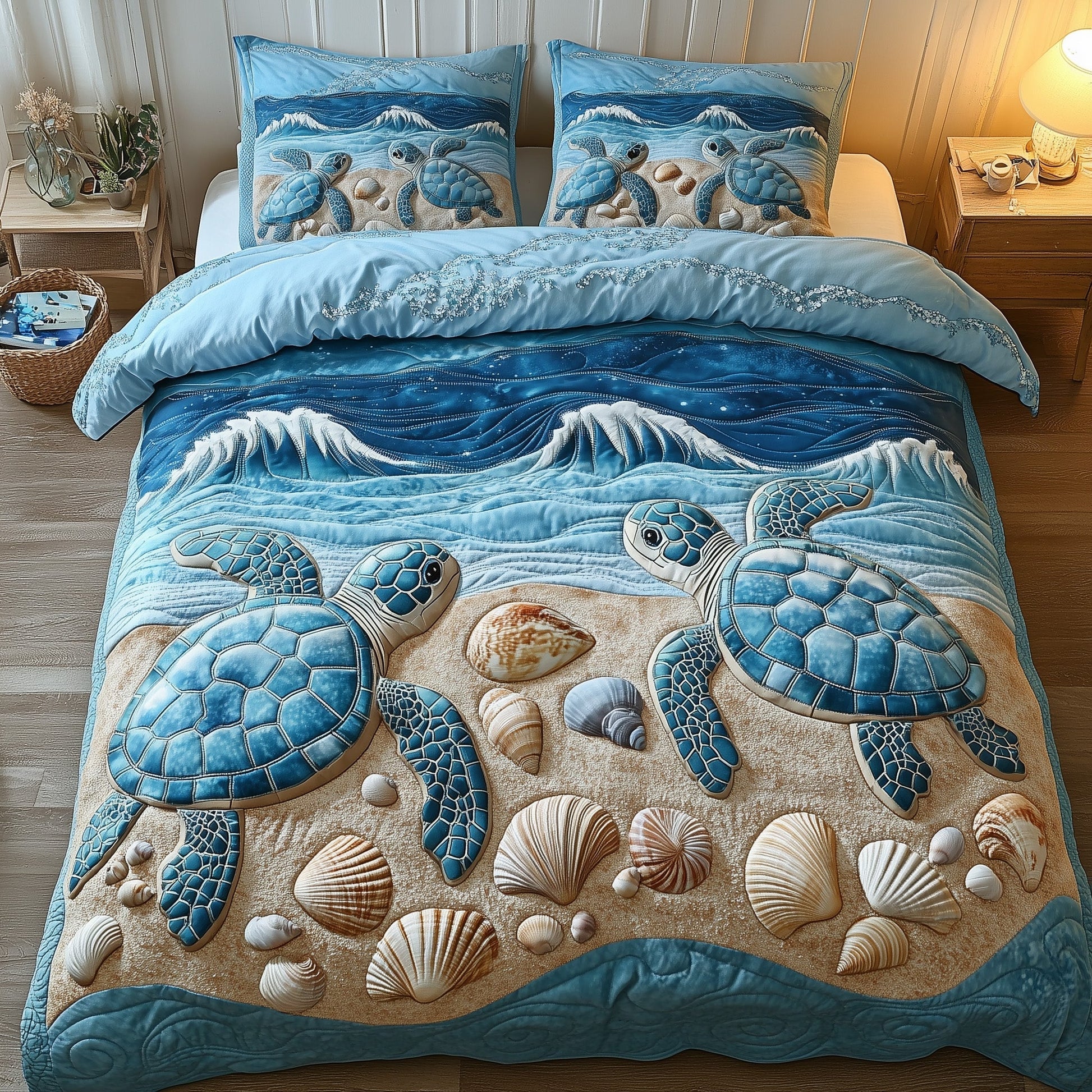 This quilted bedding set is amazing. The fabric is high-quality, and the design is stunning.