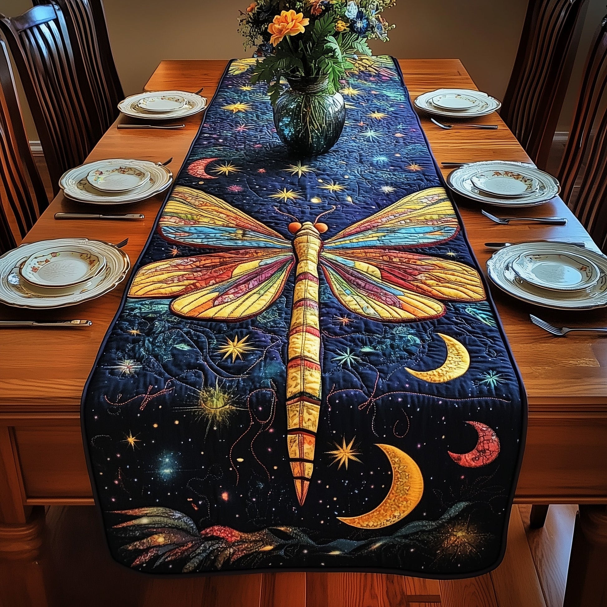 Midnight Dragonfly Quilted Table Runner GFTOTP3643