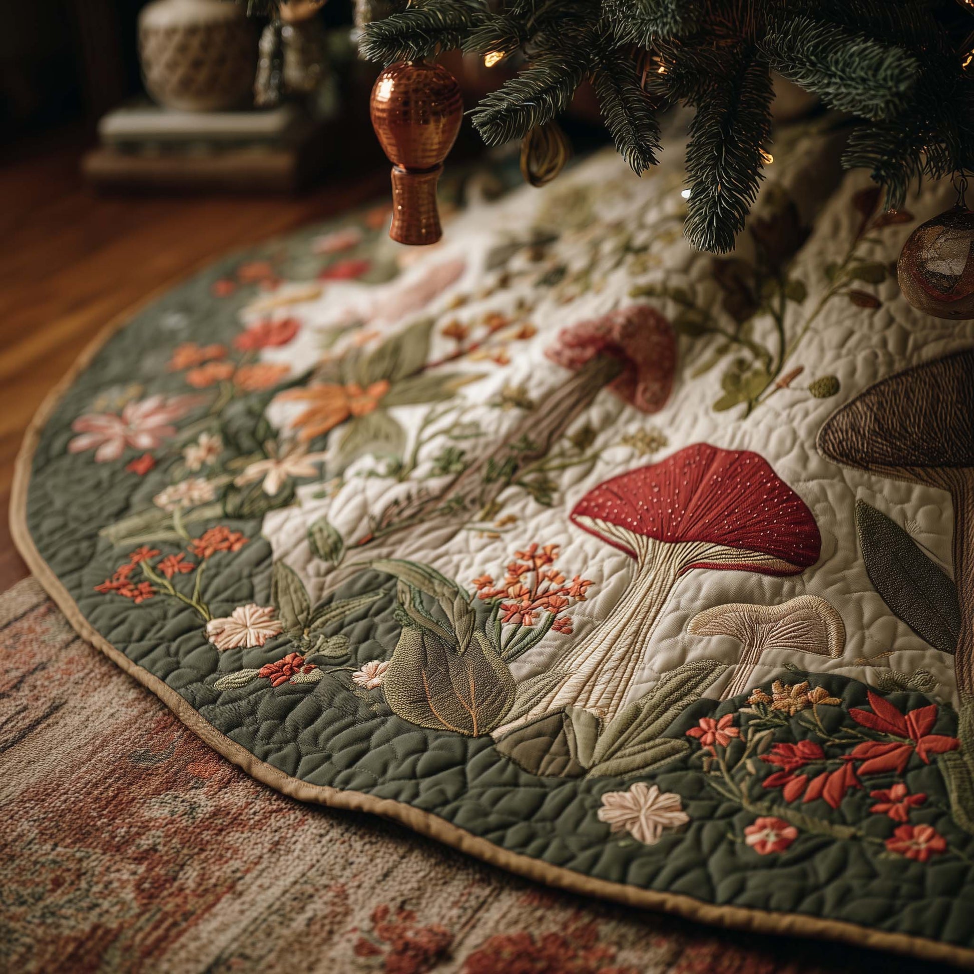 Mushroom Garden Quilted Tree Skirt GFTOHD12563