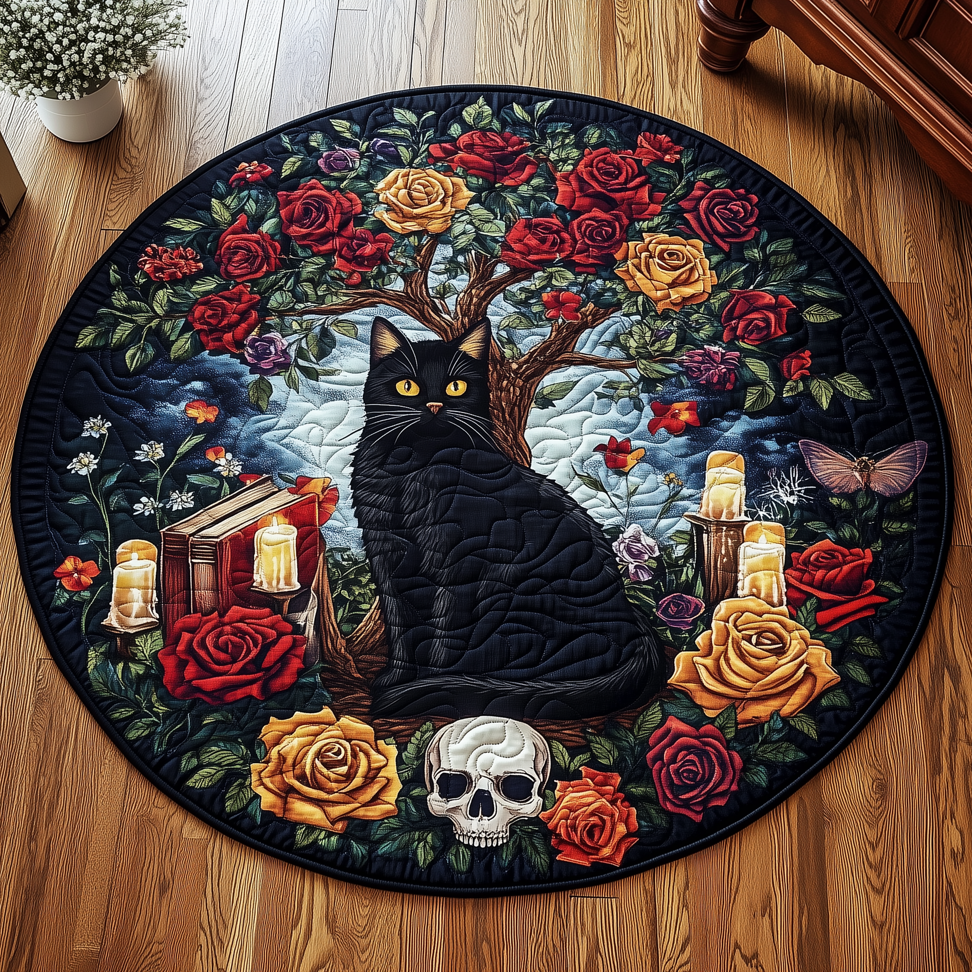 Mysterious Cat Quilted Round Mat GFTOAB2451