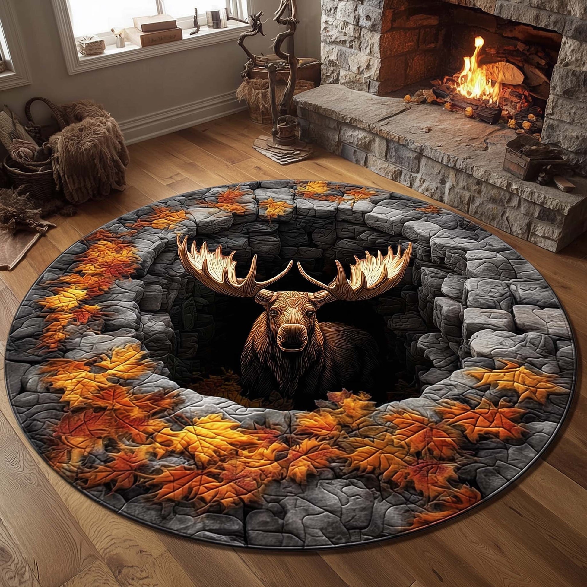 Mystic Autumn Moose Quilted Round Mat GFTOHD11567