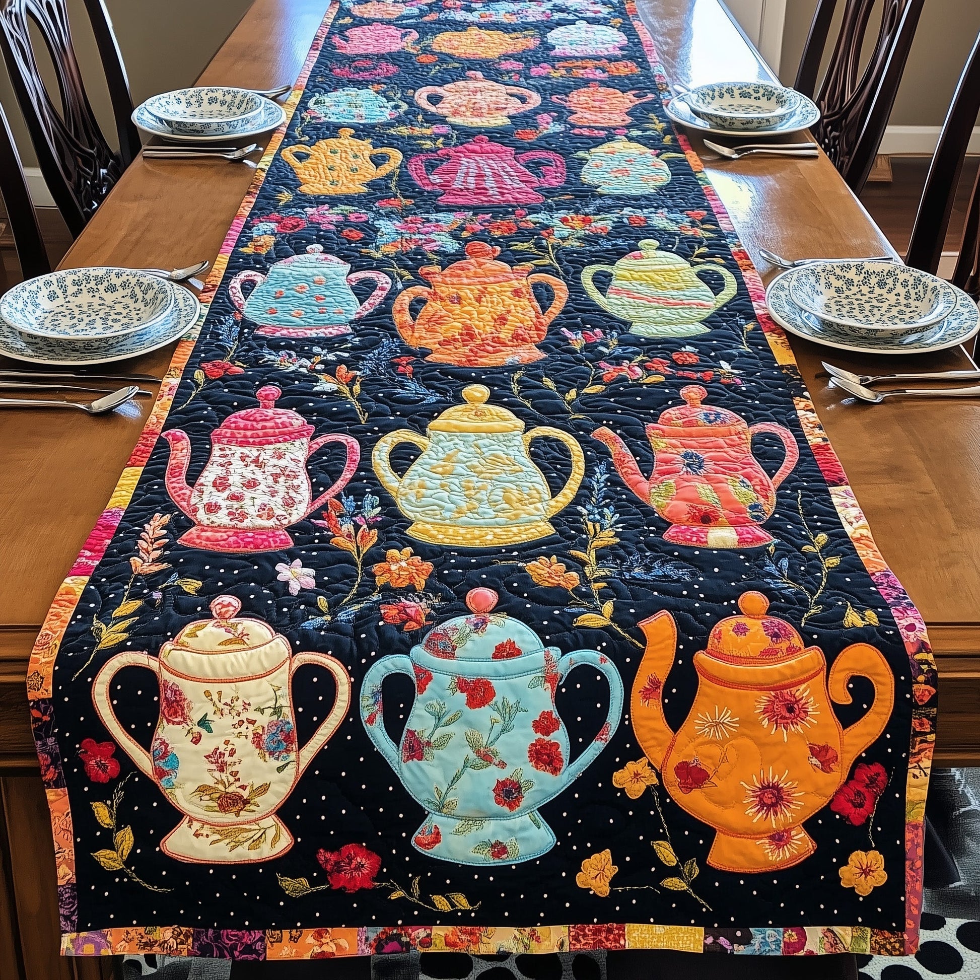 Patchwork Tea Party Quilted Table Runner GFTOHD6217