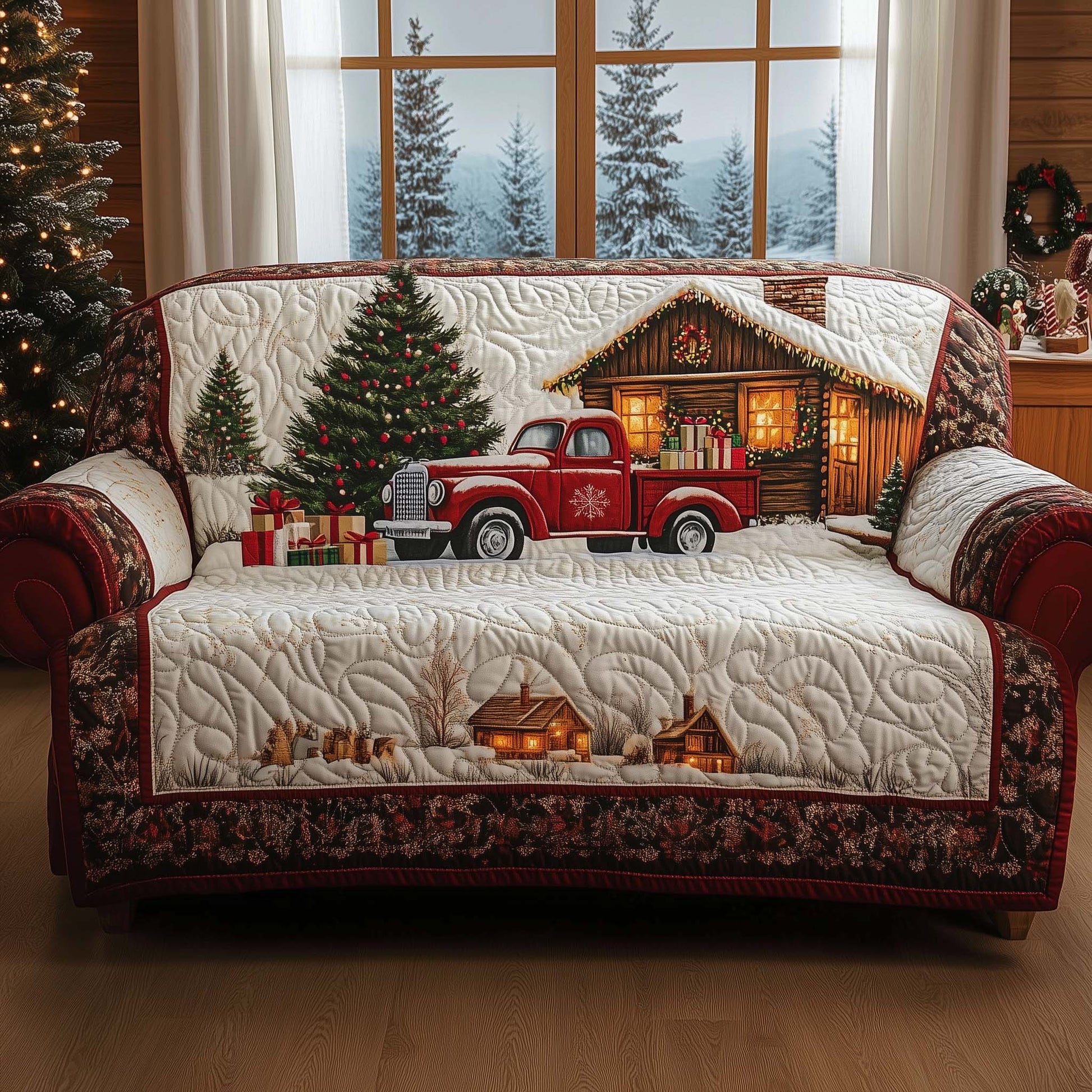 Peaceful Snow Cabin Quilted Sofa Cover GFTOHD12076