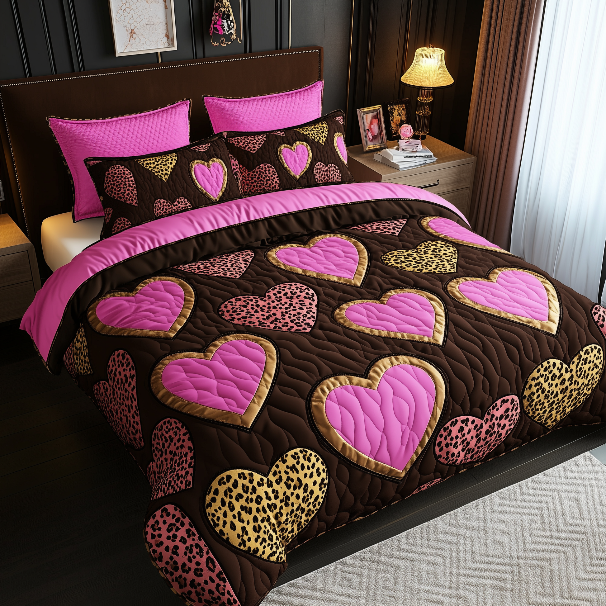 Pink Leopard Heart 3-Piece Quilted Bedding Set GFTONL1691