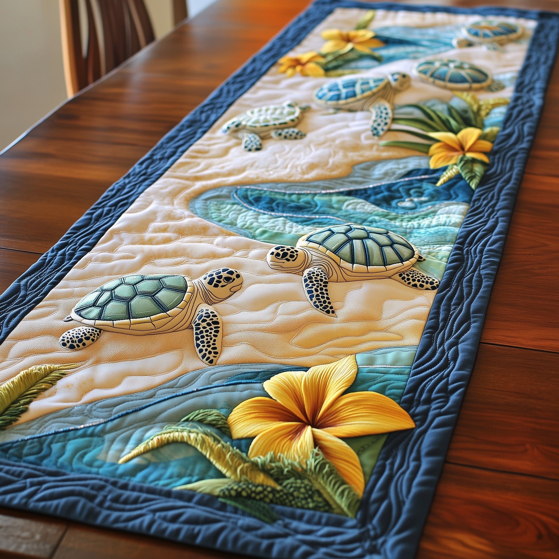 Plumeria Turtle Quilted Table Runner GFTONL4094