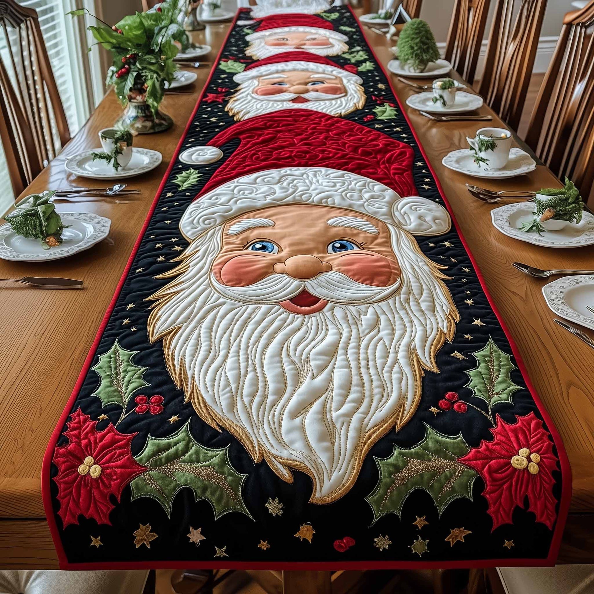 Poinsettia Claus Quilted Table Runner GFTOYC1165