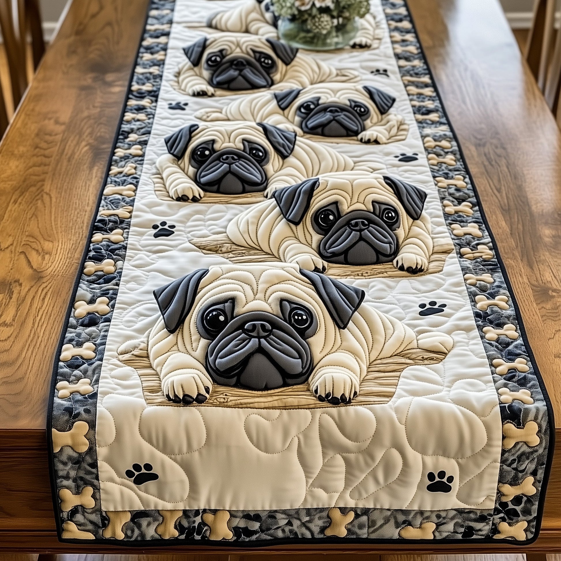 Pug Parade Quilted Table Runner GFTOTG846