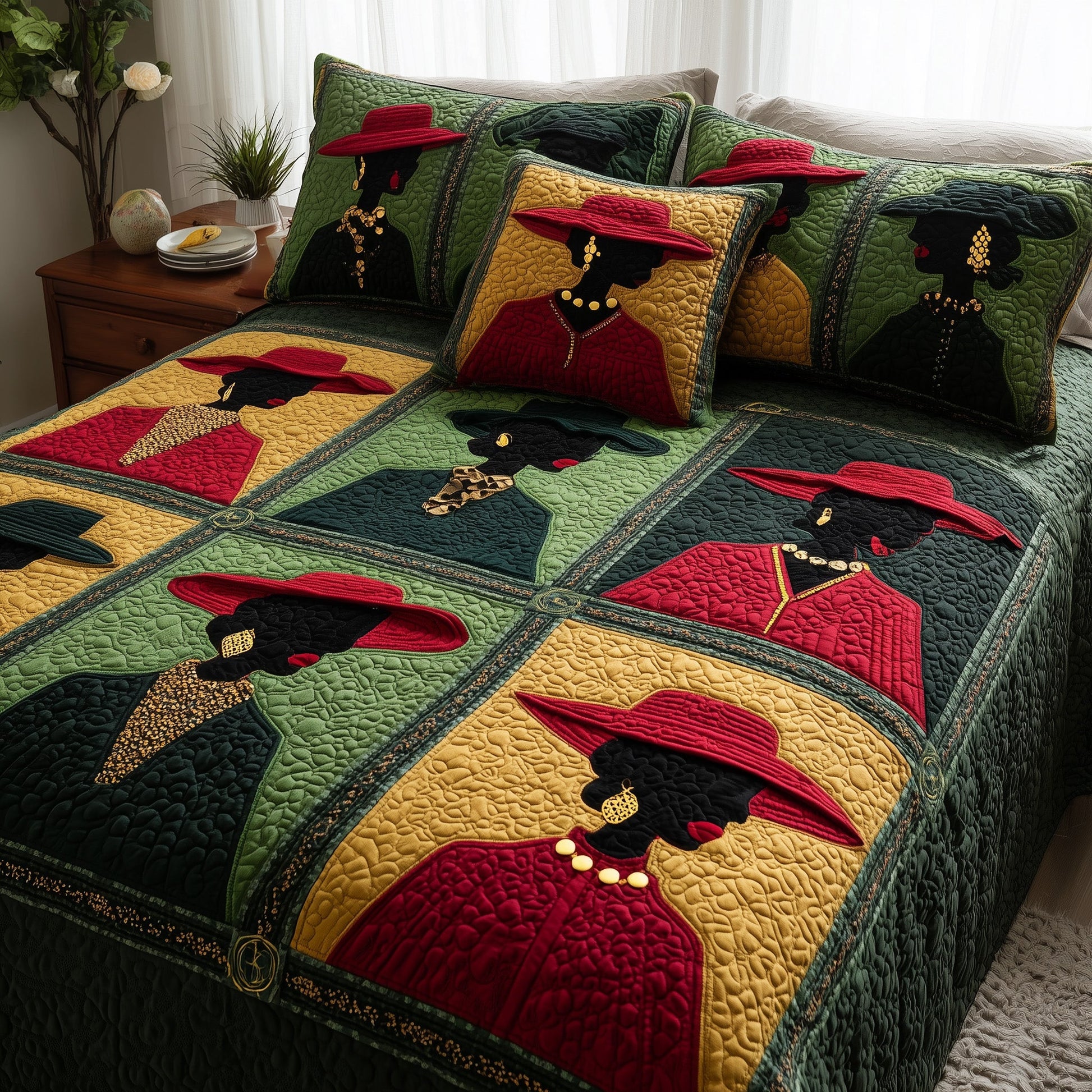 This quilted bedding set is amazing. The fabric is high-quality, and the design is stunning.