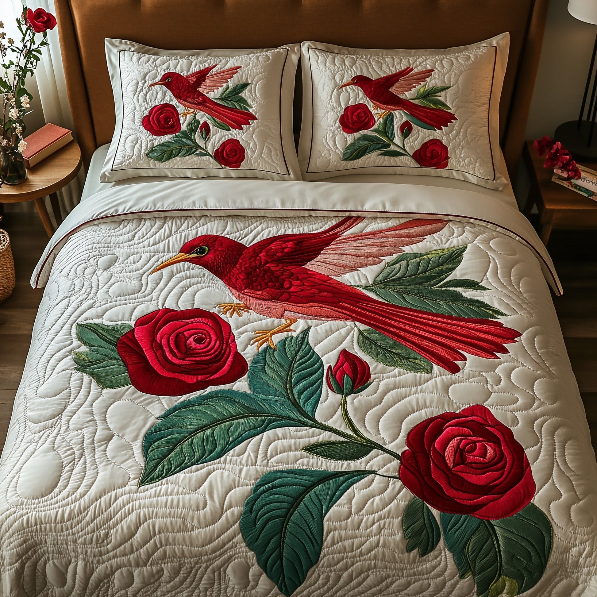 Rose And Hummingbird 3-Piece Quilted Bedding Set GFTOMA1499