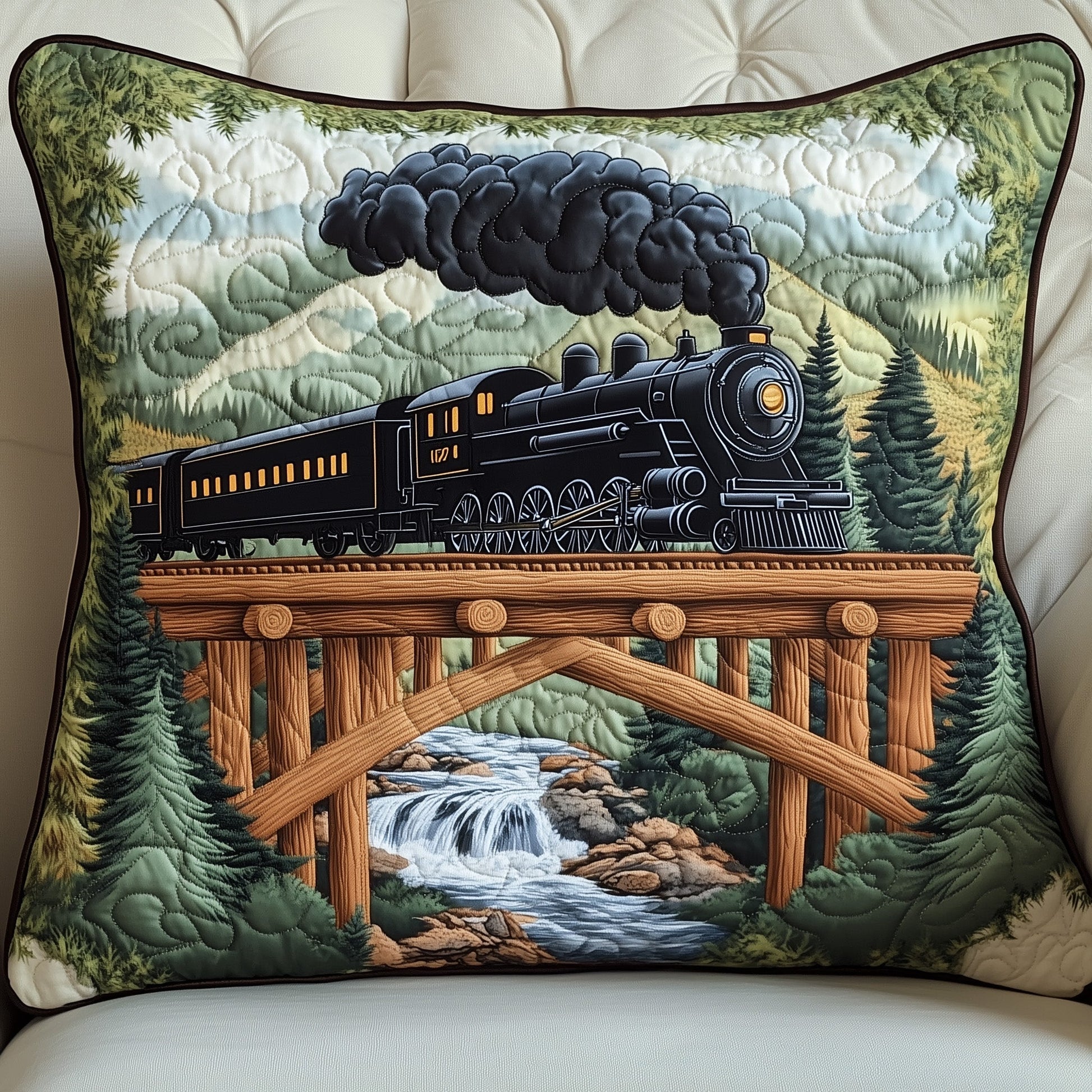 Rustic Train Quilted Pillow Case GFTOHD7446