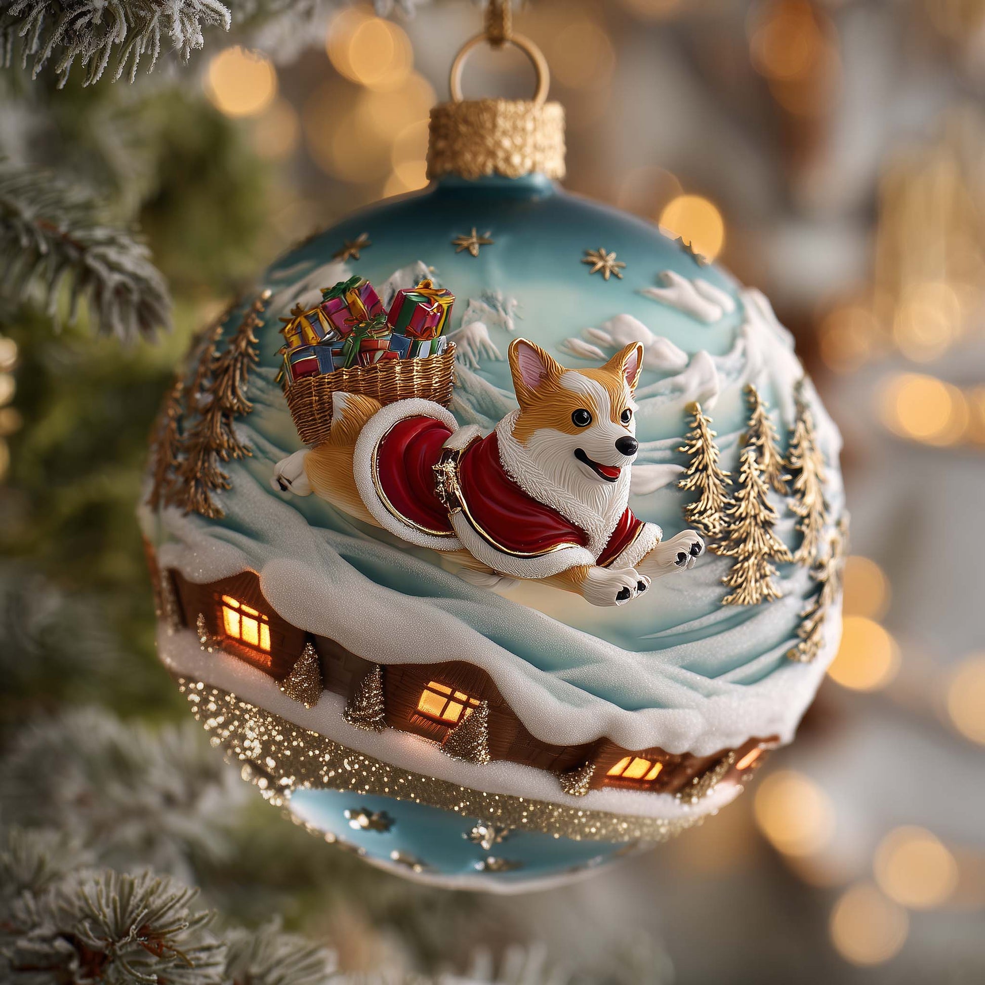Santa Corgi Christmas Mica Ornament GFSPQA140