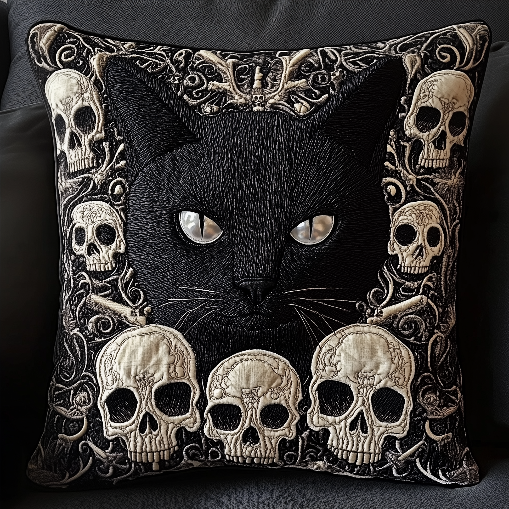 Skull And Black Cat Quilted Pillow Case GFTOAB1201