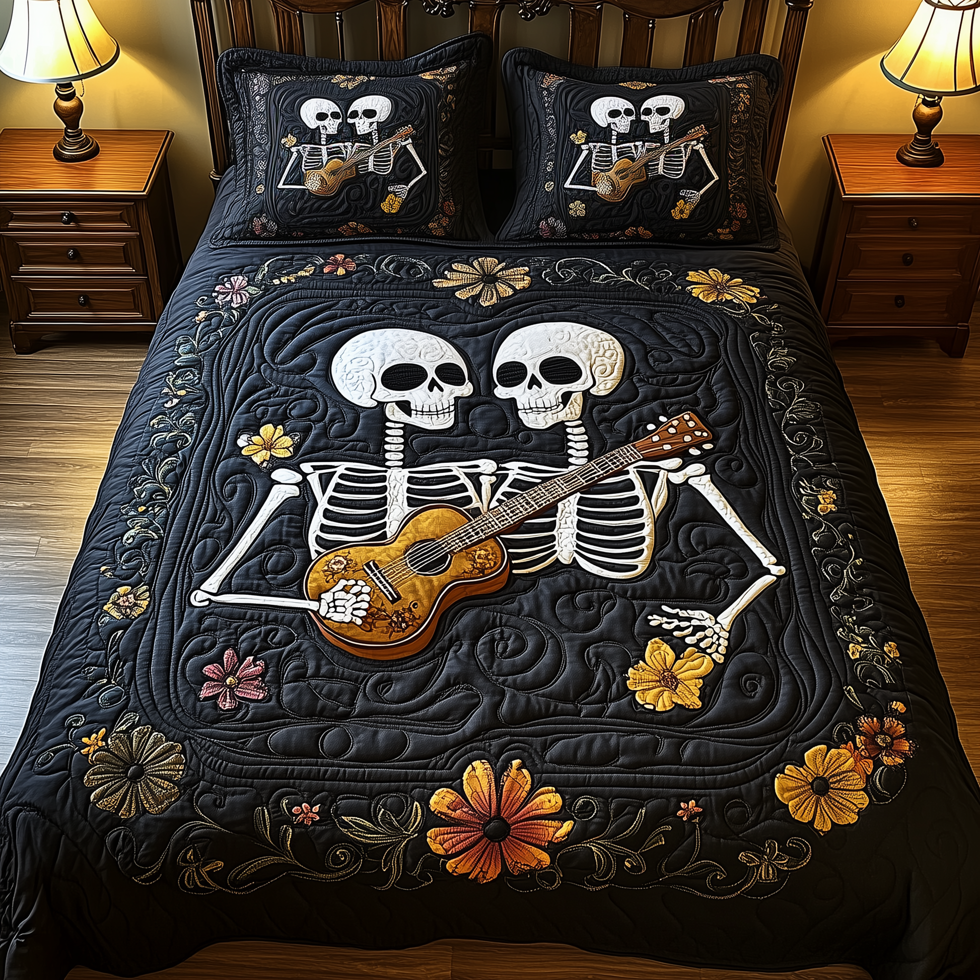 Skull Couple with Guitar 3-Piece Quilted Bedding Set GFTOTP818