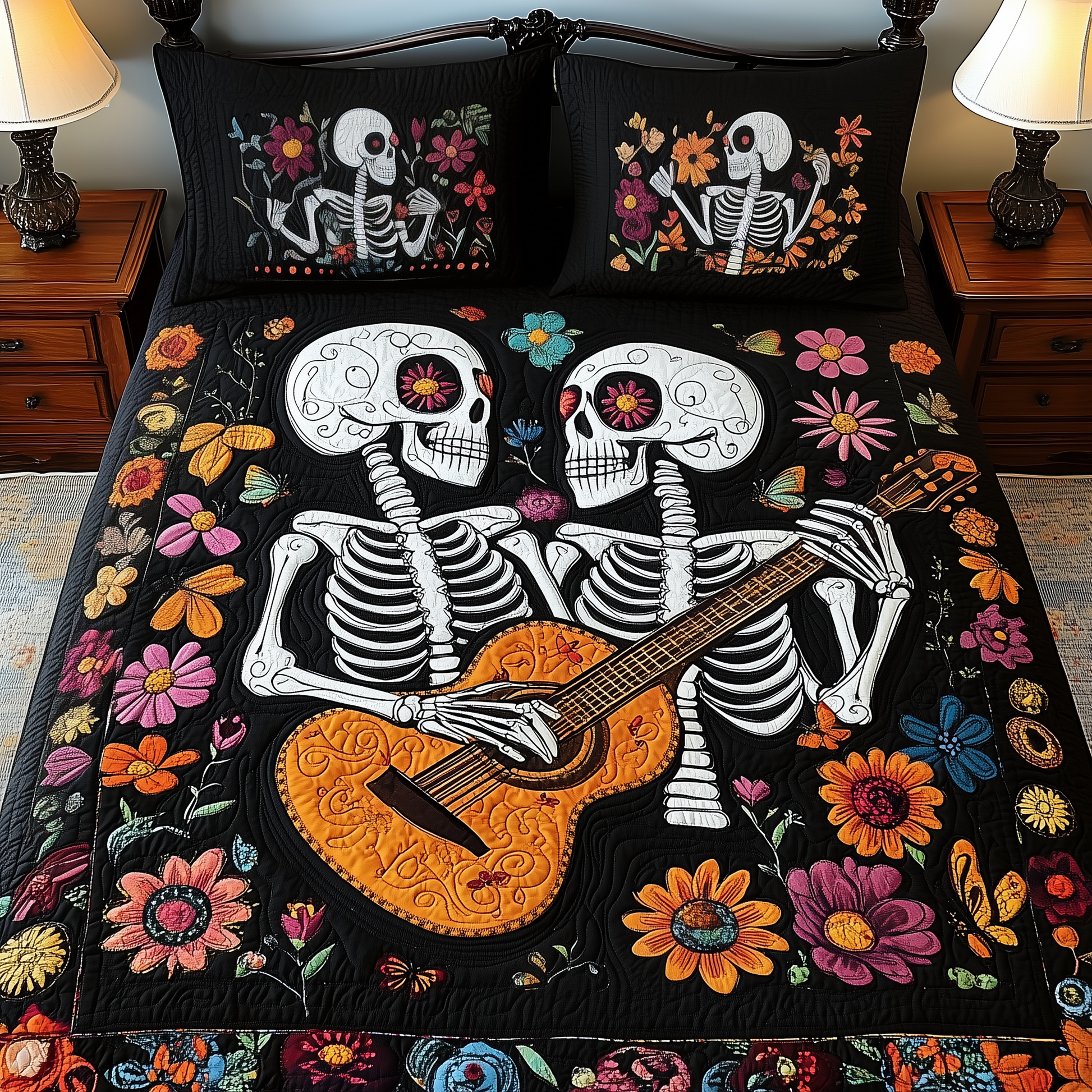 Skull Couple with Guitar 3-Piece Quilted Bedding Set GFTOTP819