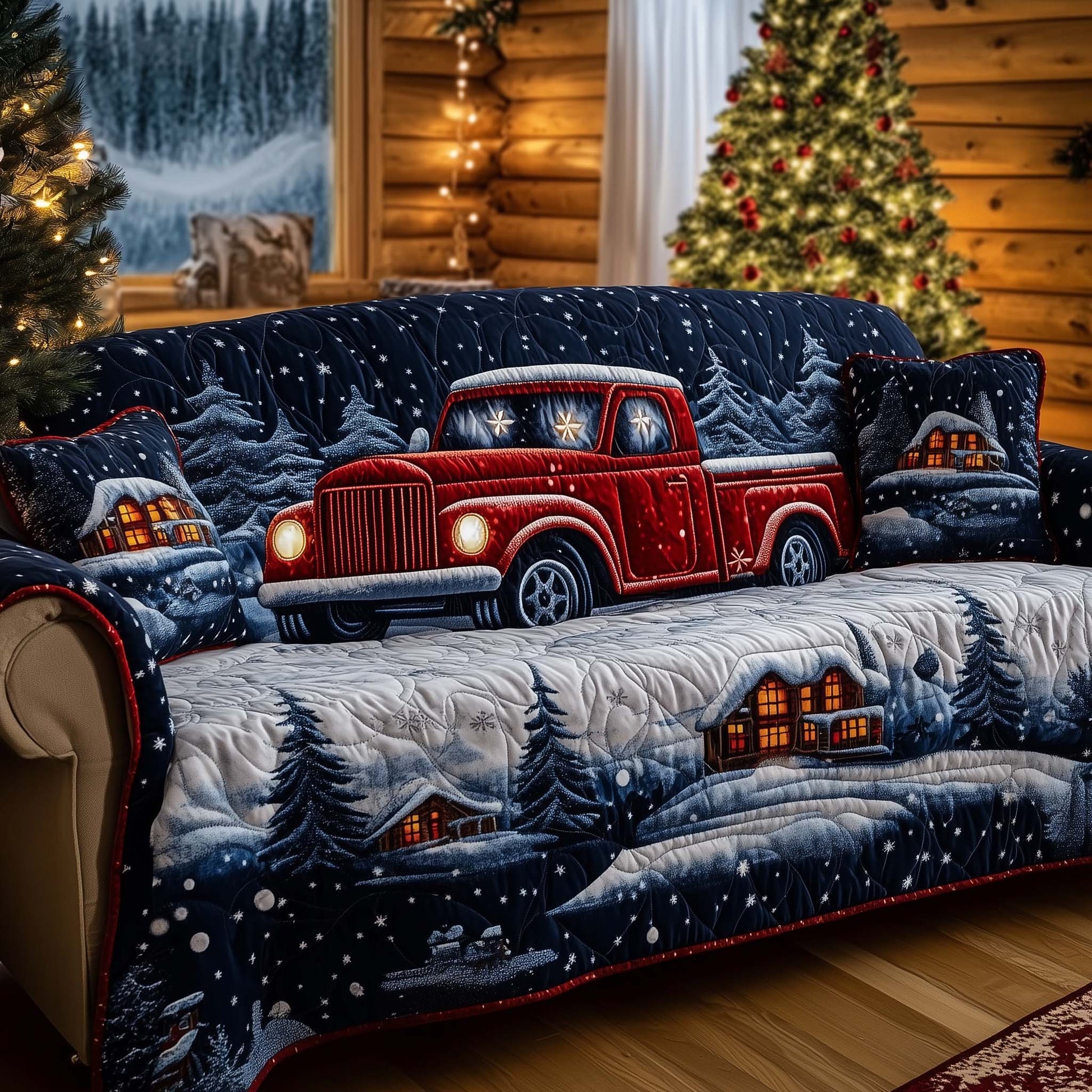 Snowy Night Delivery Quilted Sofa Cover GFTOHD11866
