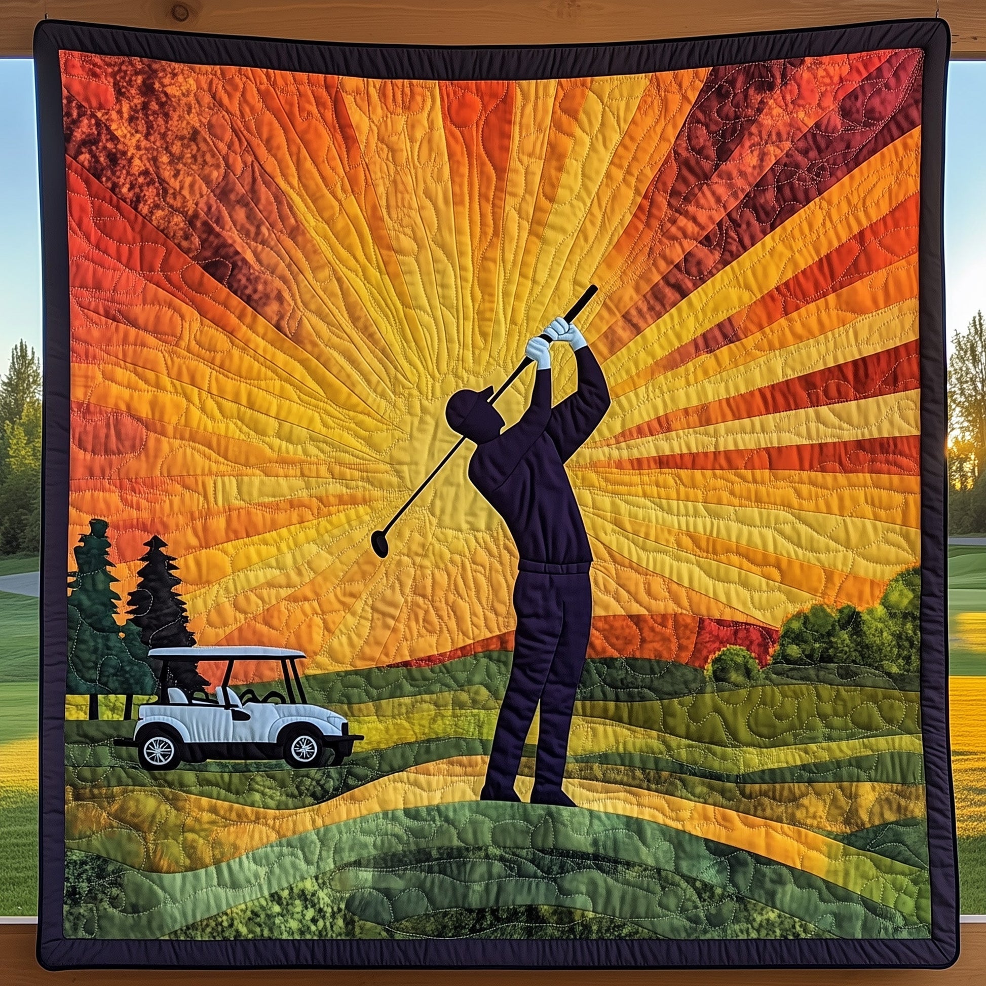 Sunset Golfer Swing Quilted Blanket GFTOHD7276
